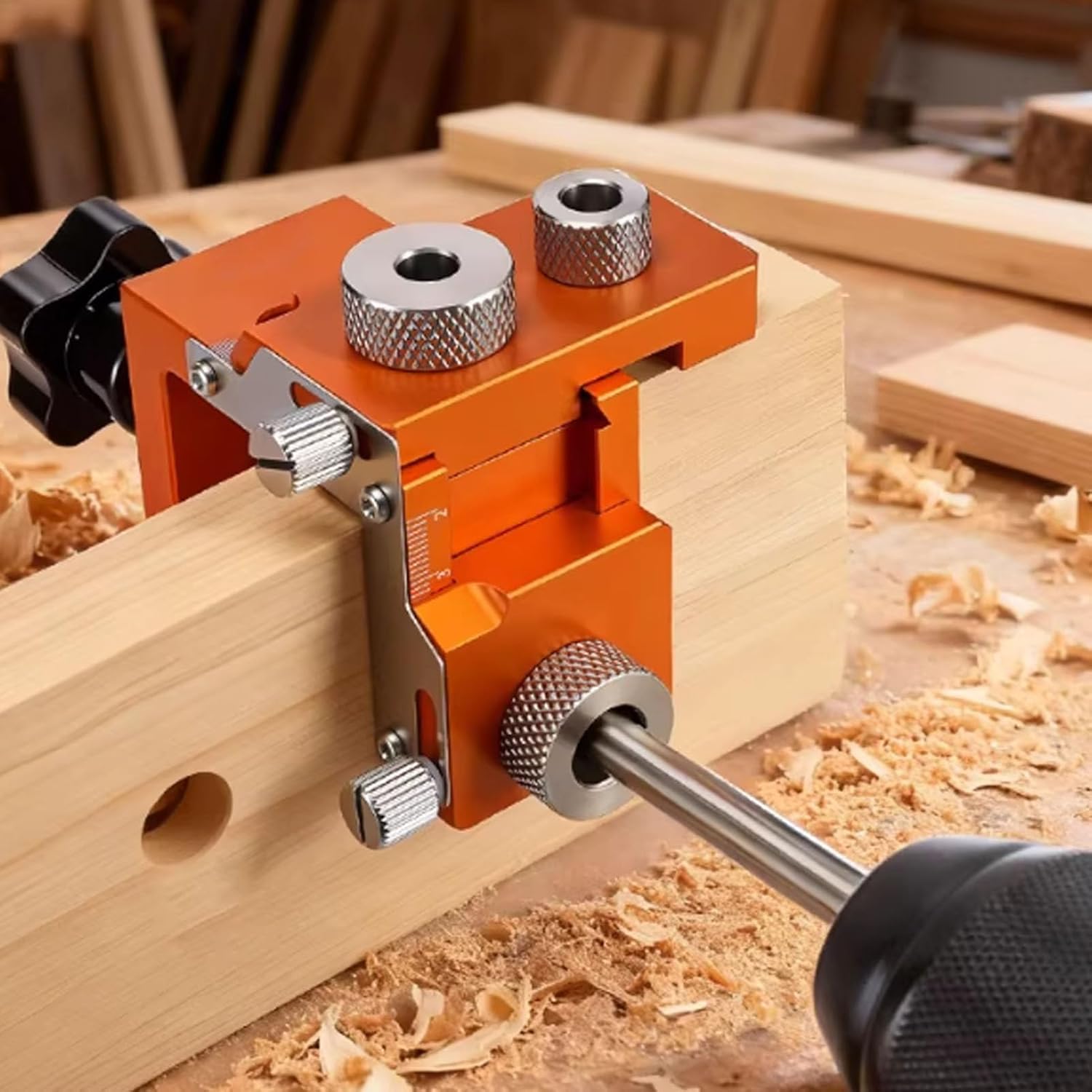 Specification: Item Type: Double Hole Punch Locator Product Material: Aluminum Alloy, Stainless Steel Applicable Board Thickness: Approx. 15-25mm / 0.59-0.98in Applicable Connecting Rod Length: Approx. 20-33mm / 0.79-1.3in Package List: 1 x Double Hole Punch Locator 1 x Hole Opener Bit 2 x Drill Bits 3 x Limit Rings 2 x Wrenches