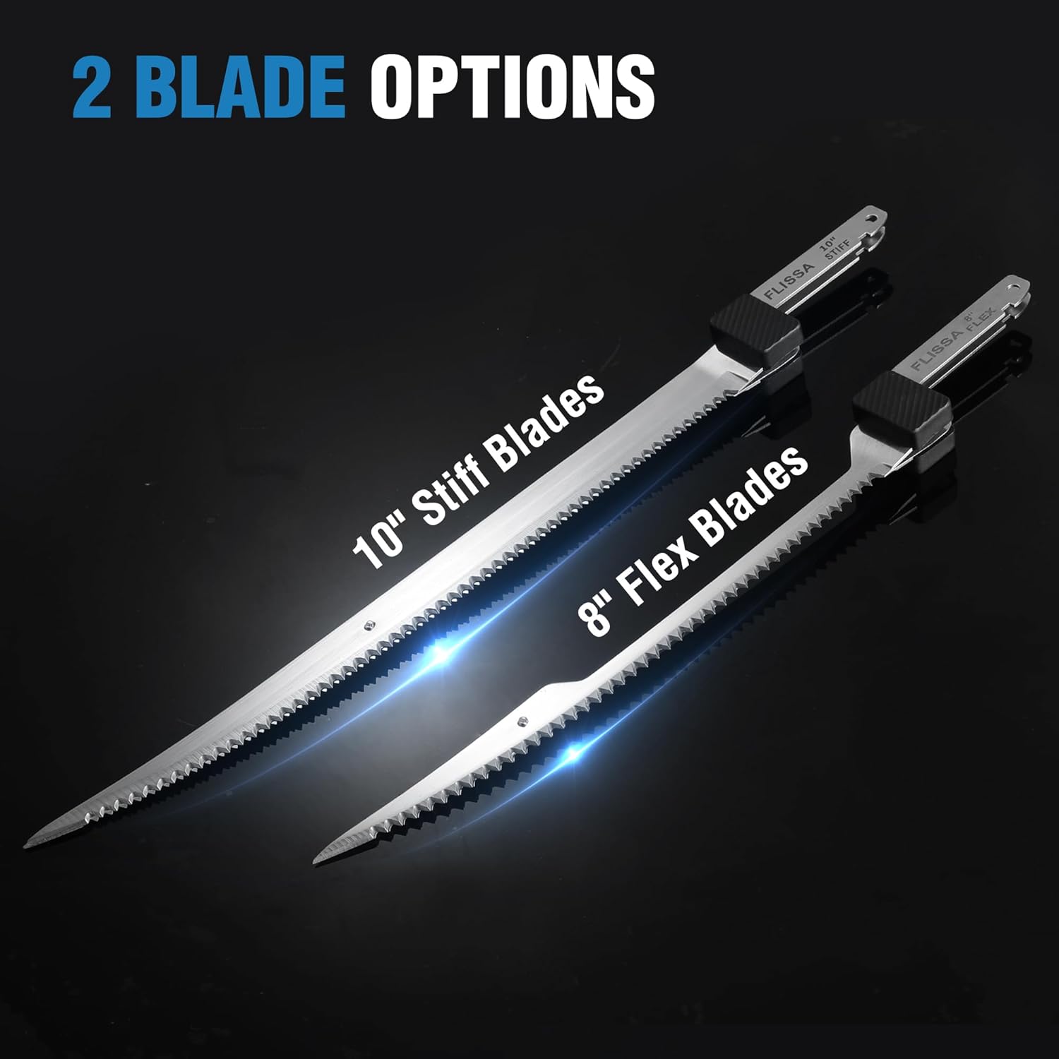 FLISSA Cordless Electric Fillet Knife for Fish with 8" and 10" Stainless Steel Blades, with one extra Replacement 10" Stiff Blade