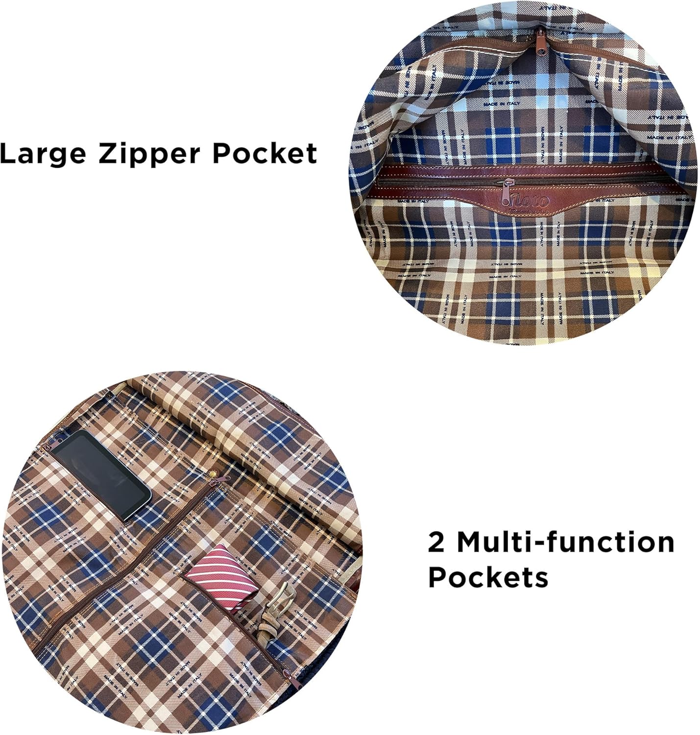 • 13"h x 11"w x 21"l (Suit Compartment is 20"w x 42"l)|Italian Polished Calfskin Leather|Detachable Shoulder Strap (42-48")|Brass or Stainless Steel Hardware|Durable Canvas Lining|3 Zip Pockets - one 8" x 14" two 7" x 7"|Weight 5.0 Pounds