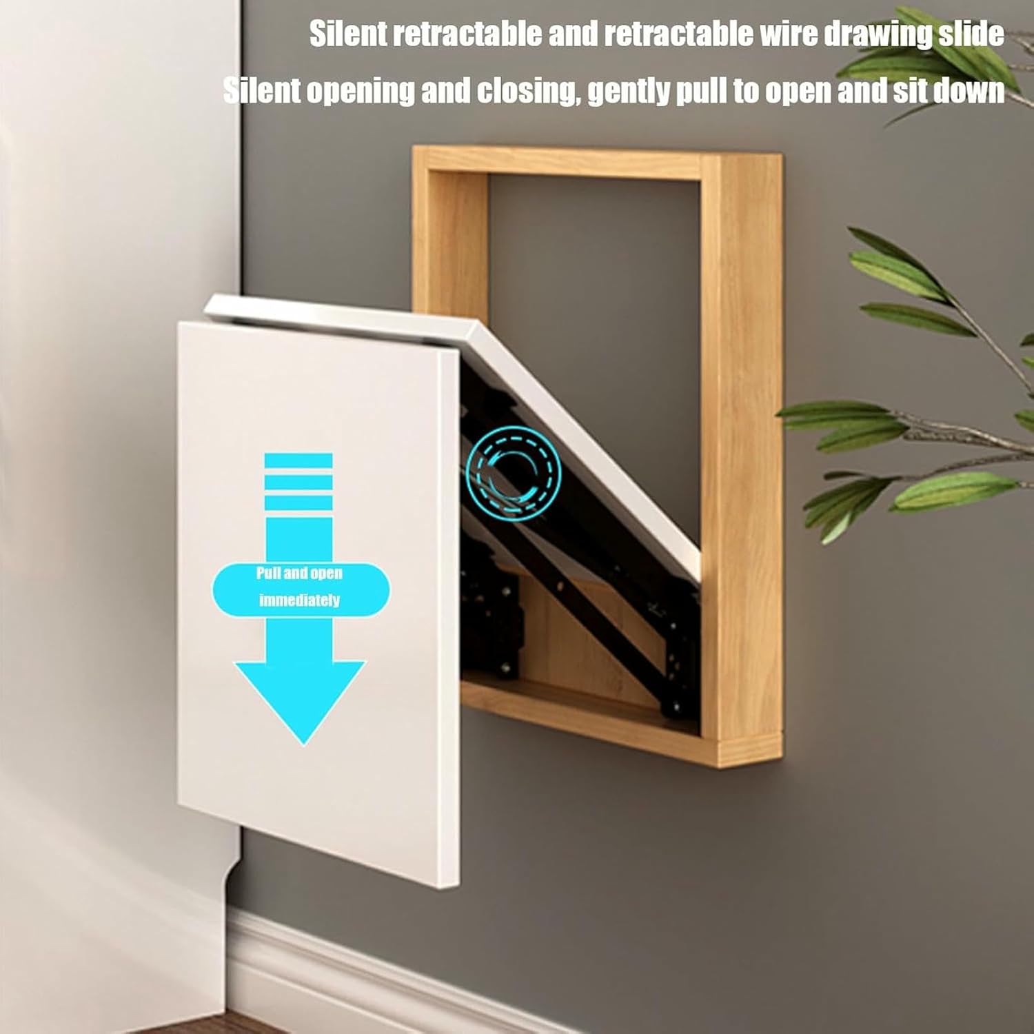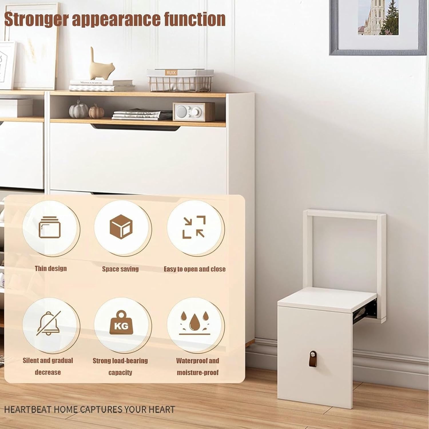 1. Product DescriptionTired of cluttered entryways? Our invisible folding shoe stool mounts flush to your wall, saving space while providing a wide, comfortable seat (supports 330 lbs!). it folds down silently with one-hand operation and features a solid wood + steel frame,Whether it is an entrance, foyer or corridor, you can use this product to enhance the convenience and comfort of your home2. Product ParametersName: Multi-Functional Wall-Mounted Folding StoolDimensions: 40 x 43 x 6 cm (folded)Material: solid wood Multi-layer board + steel frameWeight Capacity: 150 kg / 330 lbsInstallation: Drill-mounted (hardware included; drill required)Color Options: Multiple finishes to match your decor3. Usage ScenariosBathroom: A convenient perch for dressing or skincare routines.RV/Tiny Homes: Maximize limited space without sacrificing comfort.Closets/Dressing Rooms: Quick seating for trying on shoes or outfits.Commercial Spaces: Spas, gyms, or locker rooms where quiet, compact seating is needed.4. Important NotesInstallation: Requires drilling (tools not included). Follow the included guide for secure mounting.Maintenance: Wipe clean with a damp cloth; avoid harsh chemicals to preserve the wood finish.Safety: Ensure the stool is fully clicked into place when folded to prevent accidental opening.【Packing List】1 x Invisible Shoe-Changing Stool