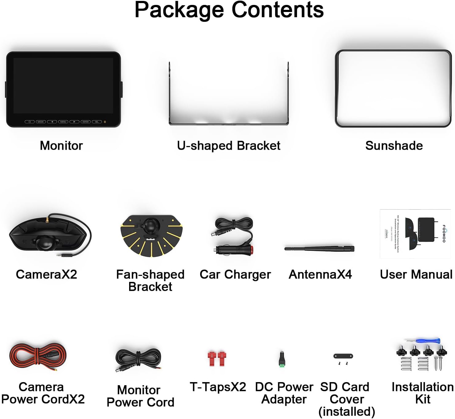 | BuiltIn Media | 10-inch IPS Monitor, Antenna X4, Power Cord X3, Car Charger, Fan-shaped Bracket, Installation Kit, Instruction Manual, Waterproof Rear View Camera X2 (Suits for Furrion Pre-wired Mount) |