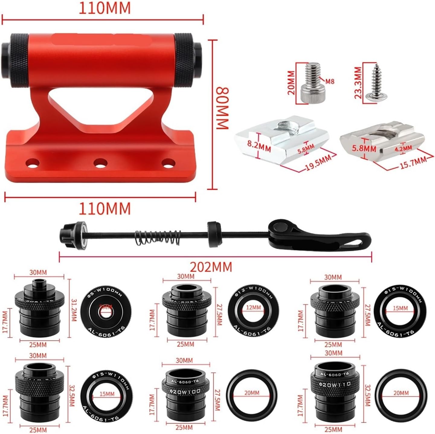 Secure Transportation: The Bike Fork Mount ensures your bicycle is securely fastened during travel. Designed for easy installation, this bike mount provides a stable and reliable way to transport your bike on any adventure, whether you're headed to the mountains or the beachVersatile Compatibility: This bike mount for car is compatible with various bike types, making it a versatile choice for cyclists. It fits standard bike forks, allowing you to easily attach and detach your bike from the bike rackFork MountHigh Compatibility: Adapts to a wide range of bicycle thru-axle sizes including 5x100mm, 12x100mm, 15x100mm, 15x110mm, 20x100mm, and 20x110mm.Versatile Use Cases: Suitable for home, garage, shed, and wall storage.Also easily installed on trucks, vans, or trailers for convenient transportation needs.Extended Design: Features an 17.7mm long fork adapter cover. The extended length combined with double sealing rings ensures enhanced stability and security.Sturdy: Made from strong yet lightweight aluminum material, offering good load-bearing capacity and providing a safe, convenient storage and transport solution for your bicycle.