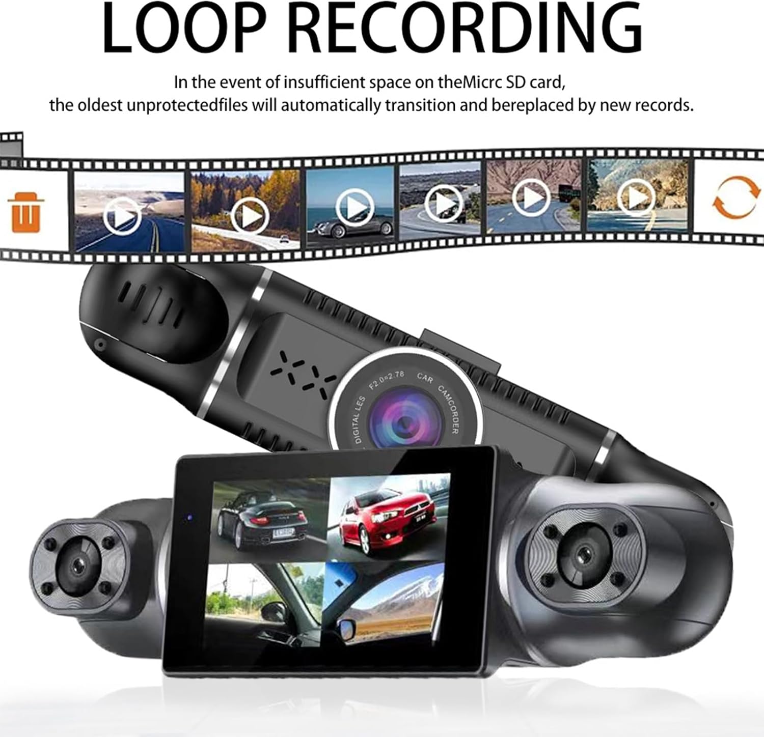 Specification Name: Four-Channel Dash Cam Wireless Size: 1.97*6.69*1.57in Front Camera: 4K UHD Resolution Front: 1080P/Left/Right: 1080P/Rear: 1080P Packing List: 1/2 Set * Four-Channel Dash Cam Note: 1.Due to manual measurements, please allow slight measurement deviations. 2.Due to the different display and lighting effects, the actual color of the item may be slightly different from the color displayed on the picture.