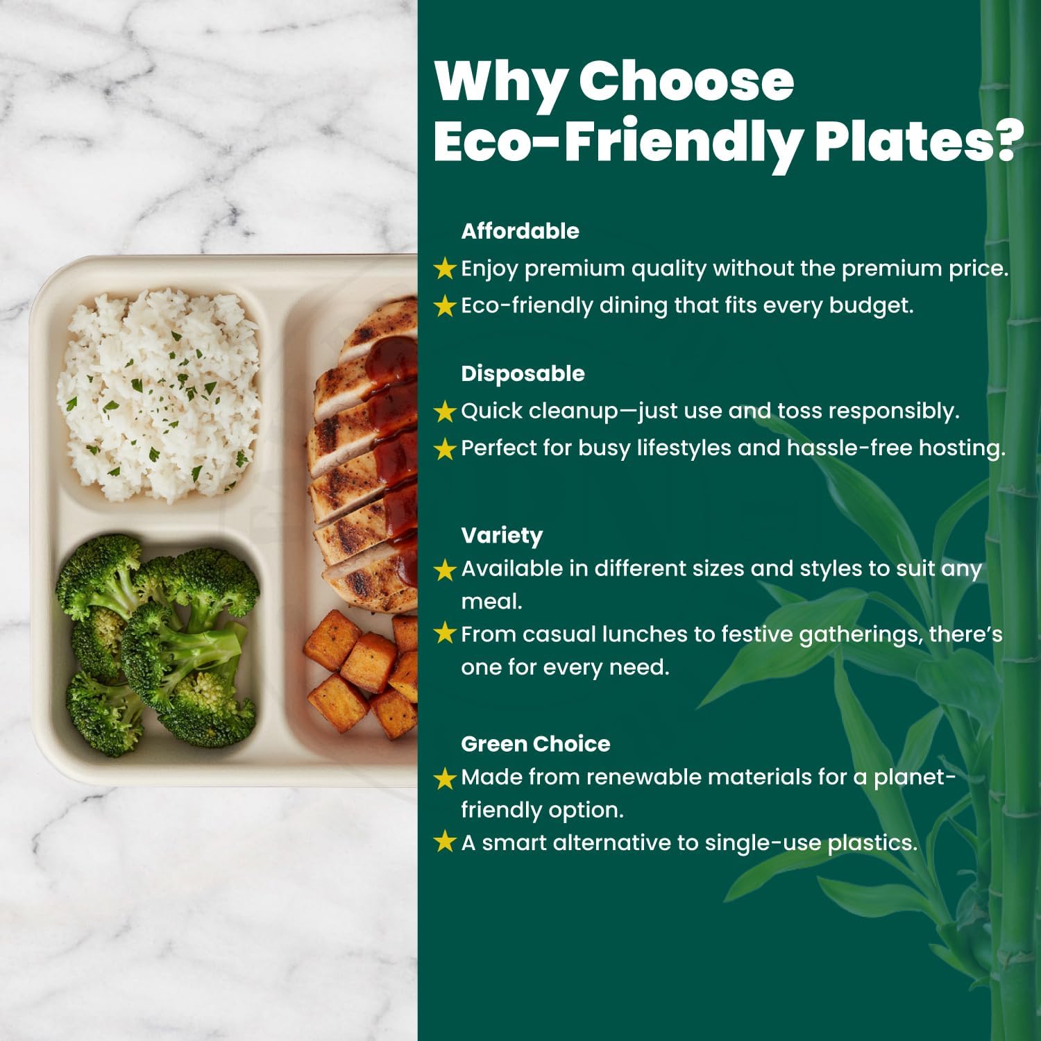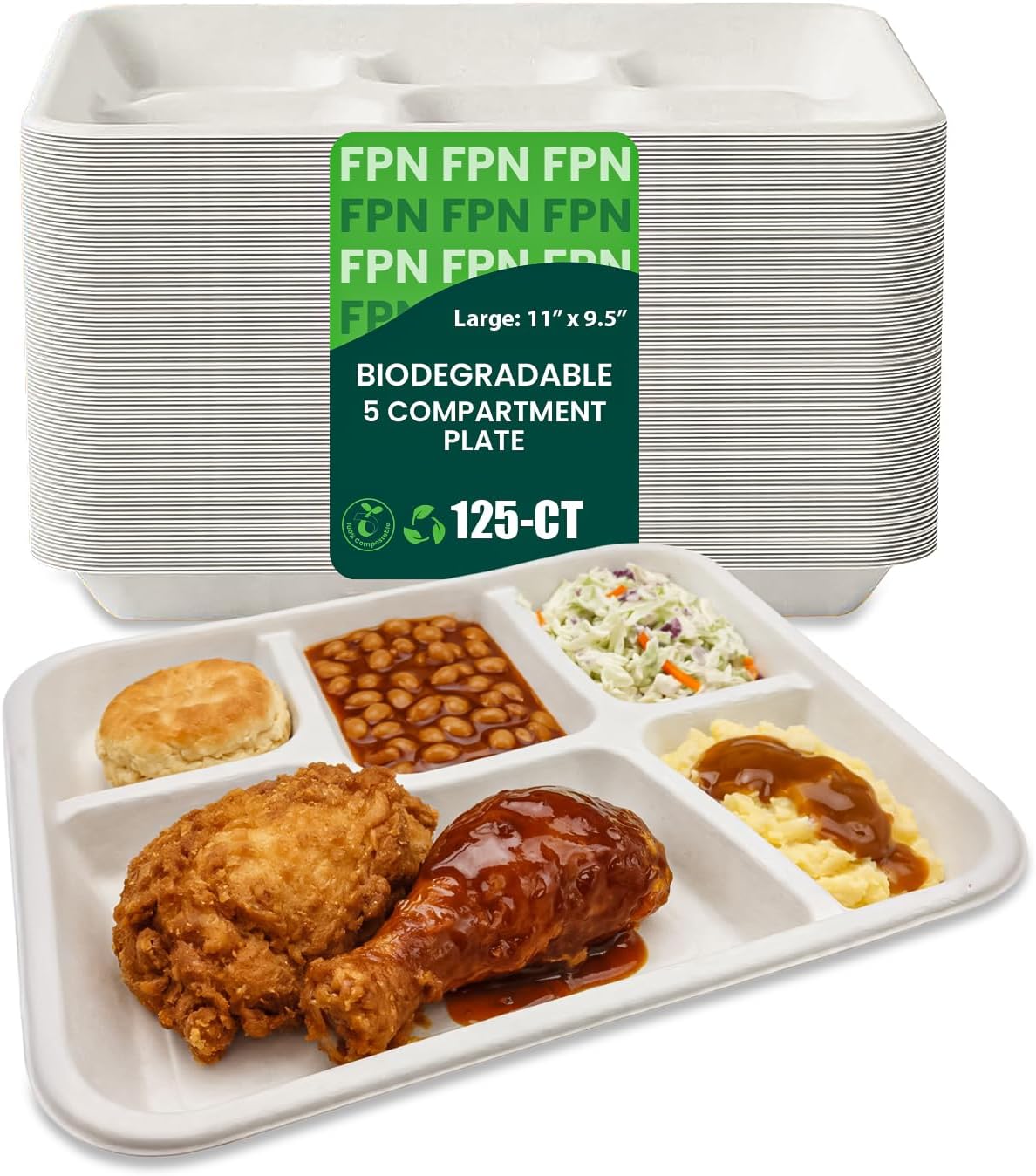 Serve smarter with FPN’s Square 3-Compartment Compostable Plates—designed for versatility, strength, and sustainability. These eco-friendly disposable plates are made from 100% natural sugarcane fiber (bagasse), offering a responsible alternative to plastic and foam. Each plate includes five sections, keeping entrees, sides, and desserts separate for a clean and organized mealtime experience. Whether you’re hosting an event, managing a school lunch program, or serving meals at a food truck or cafeteria, these plates hold up under pressure—literally. The rigid, leak-resistant construction is microwave-safe, freezer-safe, and cut-resistant, so you can serve anything from soups to BBQ without worrying about spills or soggy bottoms. Completely biodegradable and compostable, FPN plates help reduce waste and support eco-conscious living. They’re disposable for quick cleanup, but better for the planet than traditional disposables. With their neutral tone and sturdy design, they’re a practical yet professional solution for food service businesses, caterers, meal prep providers, and eco-minded homes.