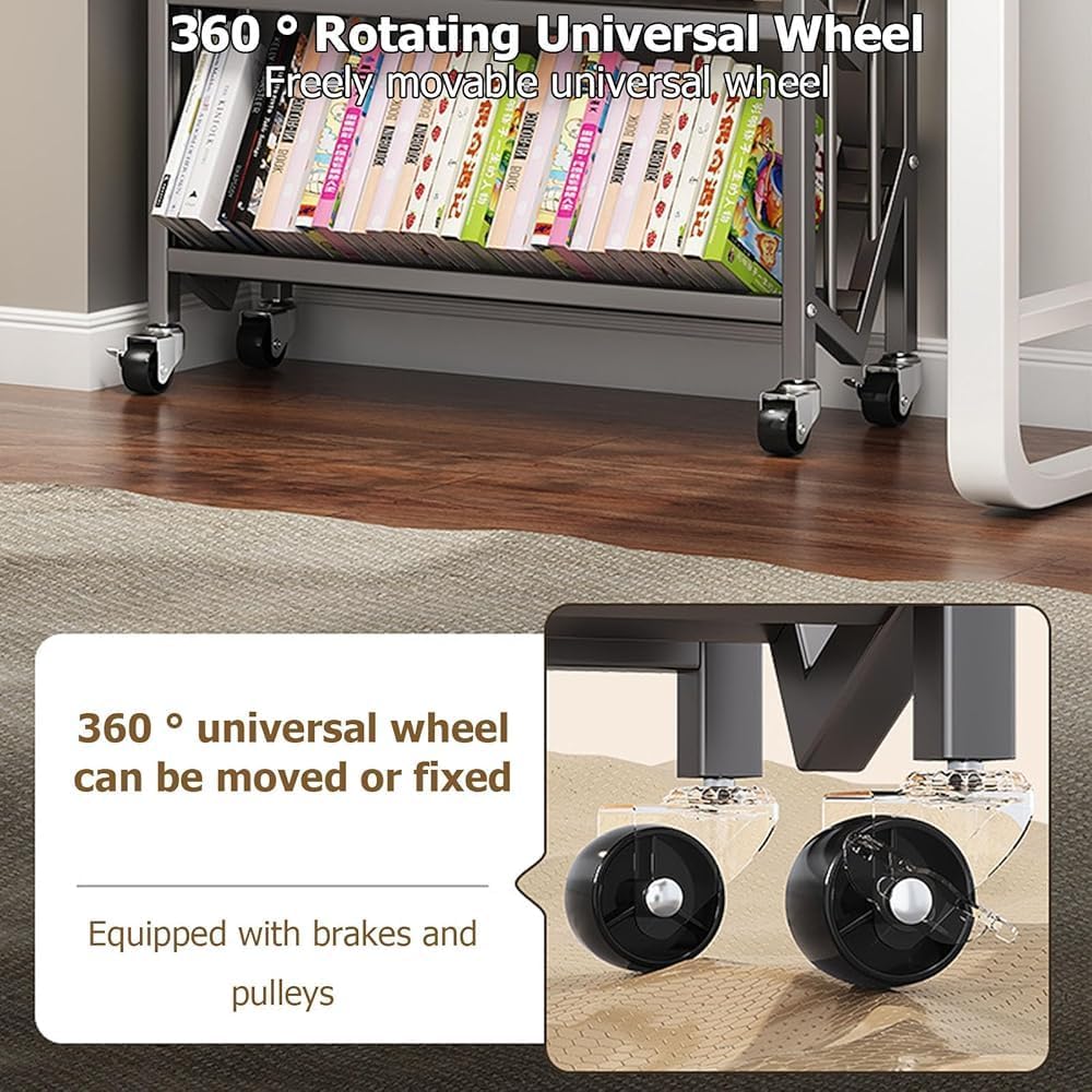 Elevate your storage solutions with our Movable Floor Magazine Rack, a versatile and modern storage organizer designed to keep your brochures, magazines, books, and records neatly arranged and easily accessible.Features:Fitted with 360° rotating wheels, you can effortlessly move the rack to any locationWith Large Open Storage Space To Meet Daily NeedsSpecifications:Material: Carbon SteelColor: Black/Milk White/GreyNumber of layers: 2/3/4/5Size: Two Layers: 19.69*9.84*20.87in,27.56*9.84*20.87in,35.43*9.84*20.87inThree Layers: 19.69*9.84*32.09in,27.56*9.84*32.09in,35.43*9.84*32.09inFour Layers: 19.69*9.84*46.46in,27.56*9.84*46.46in,35.43*9.84*46.46inFive Layers: 19.69*9.84*57.68in,27.56*9.84*57.68in,35.43*9.84*57.68inPackage Contents:1 × Movable Bookshelf4 × Hooks1 × Install Accessories
