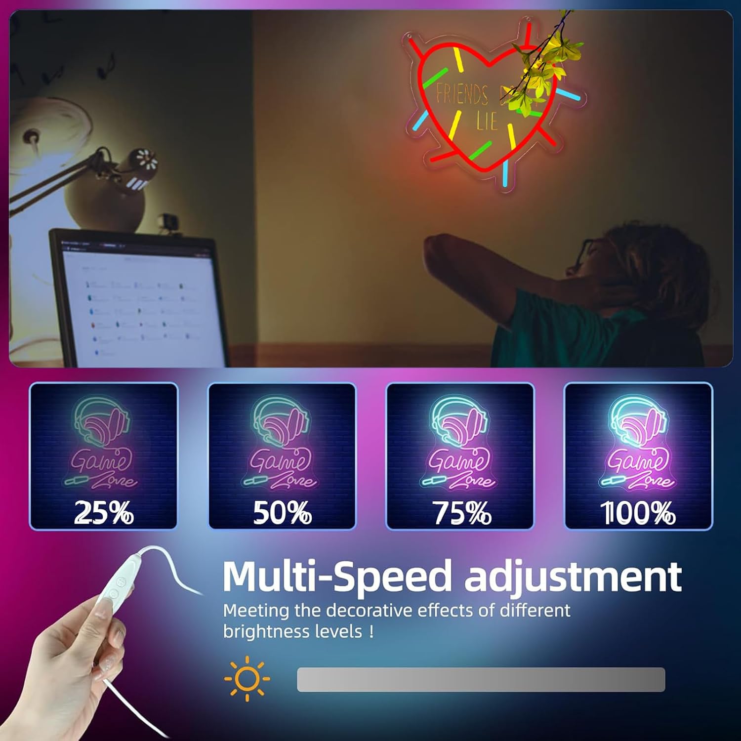 Friends Don't Lie Neon Sign,LED Neon Light Up Sign for Wall Art Decor,Gifts for Teen Boys、Teenage Girls、Game Player