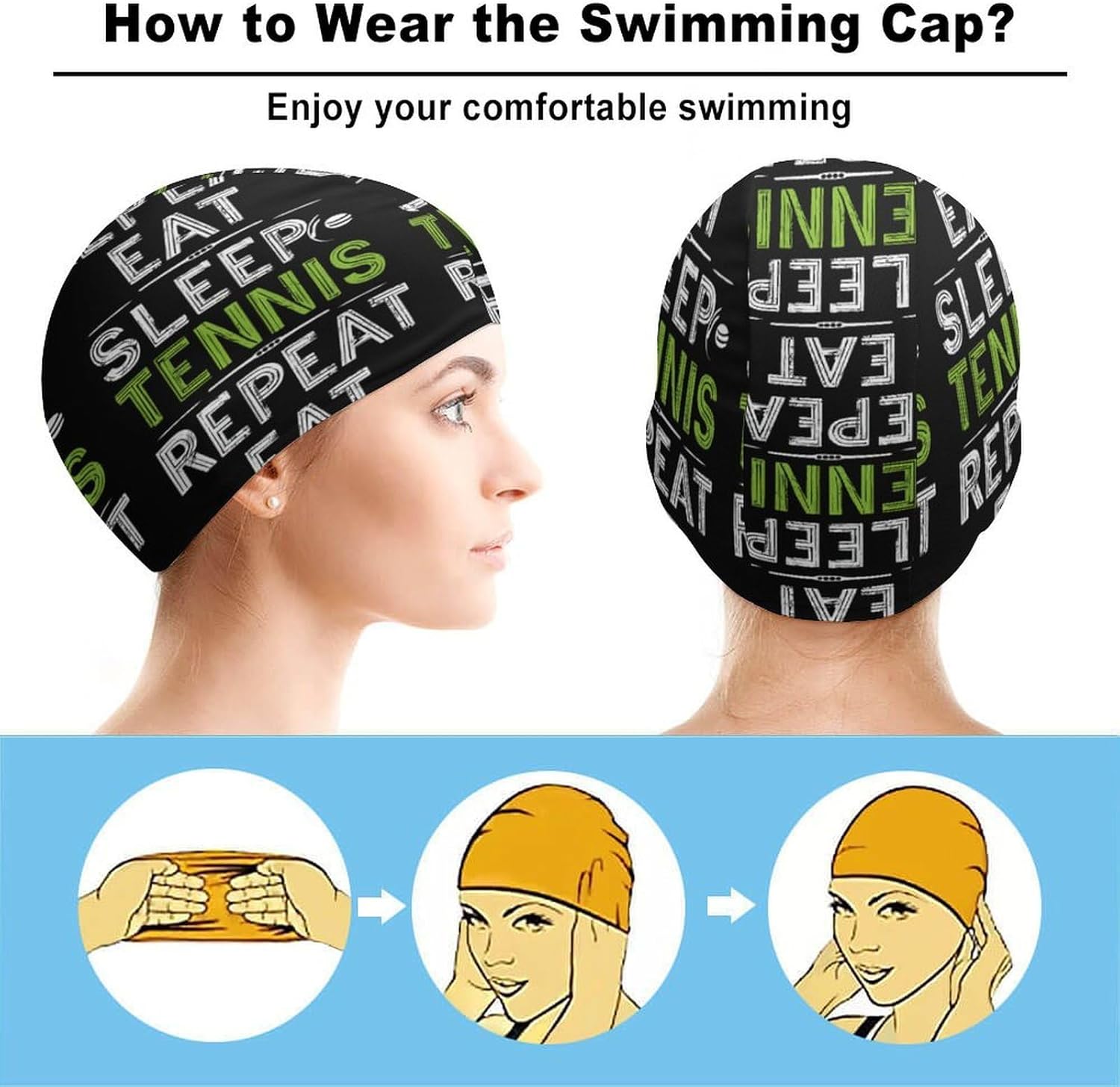 Stay comfortable and protected in the water with this women’s swim cap designed for all hair types, including short, medium, long, and curly hair. Made from stretchable polyester blend material, this swim cap provides a snug yet comfortable fit, ensuring your hair stays dry and shielded from chlorine and pool chemicals. The hydrodynamic design helps reduce drag, making it a great choice for both casual swimmers and competitive athletes