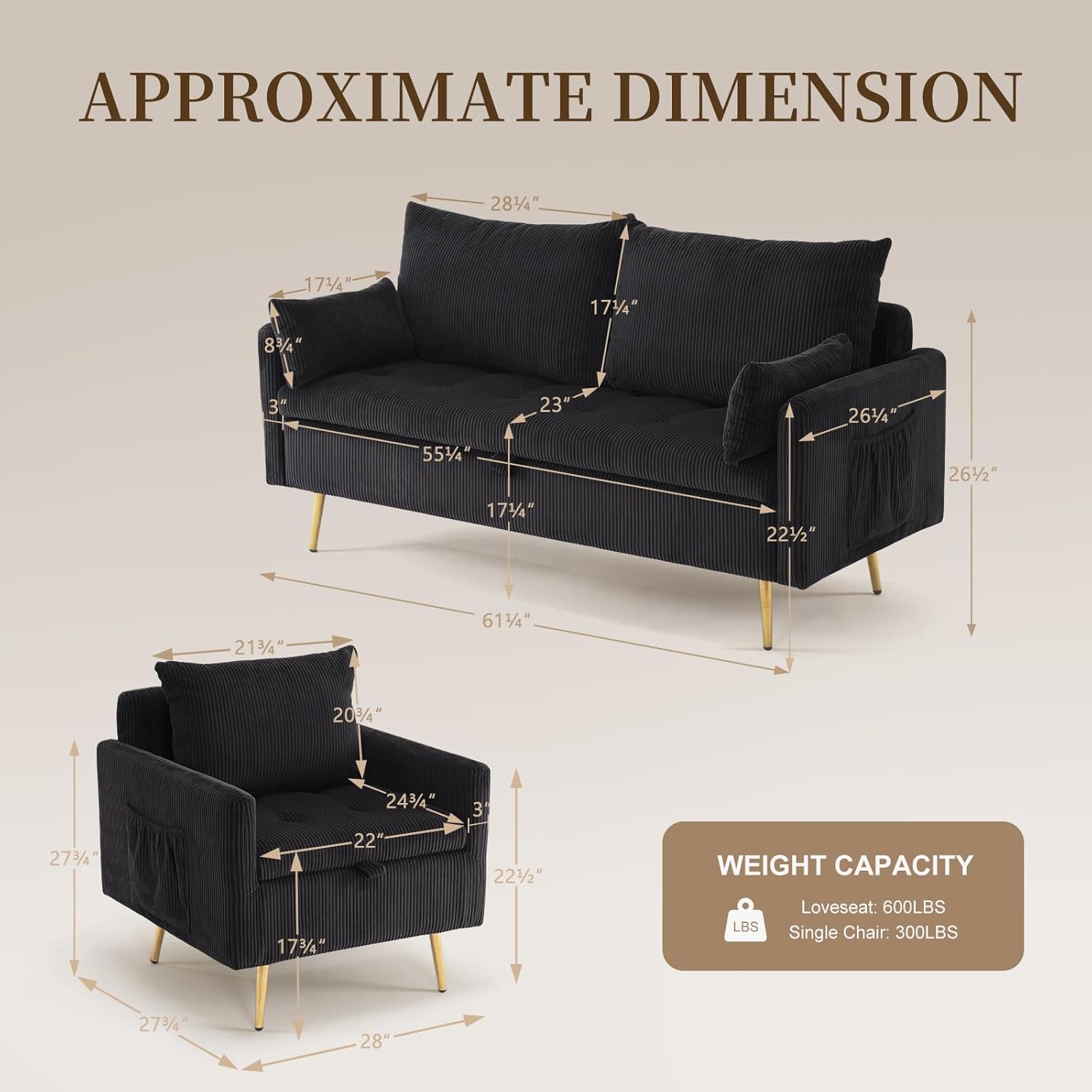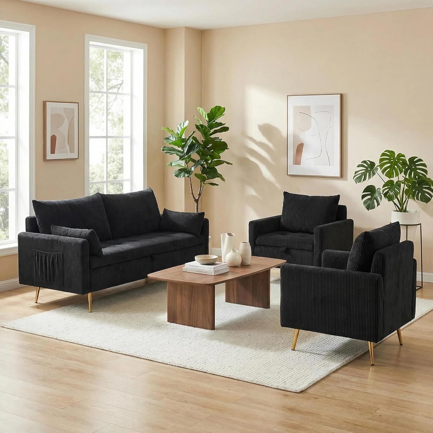 | Included Components | 2 Sofas, 1 Coffee Table |