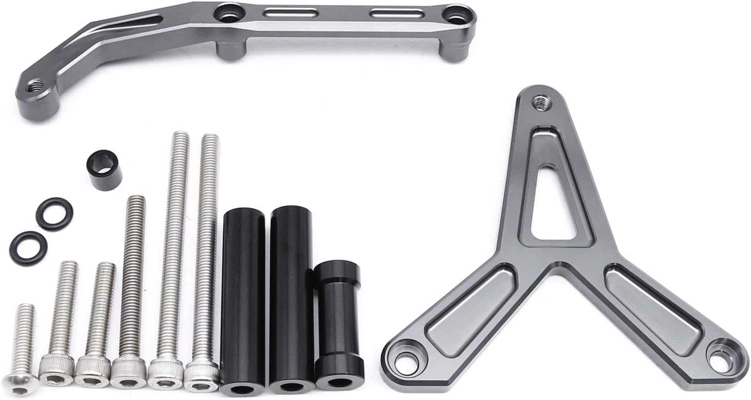 Fitment: for FJ-09 /MT-09 Tracer 2021-2023, Tracer 900 GT 2021-2023 Feature: 100 % brand new Material : T6061-T6 Aluminum (High Quality Material, Light grade & Light-weight) Finish: CNC & Anodized (durable and not easy to fade) Color : Show as pictures If you need other colour,please leave me a note after payment, thanks! Weight: 0.6 kg Others: Perfect fit and no modification is needed, No installation instructions High stability Package Included: 1 set of Bracket kits Note: 1.Not including Steering Damper Stabilizer Control bar 2.Check if the steering damper and its kit reach the motorbike or oil tank About after-sales service: Provide three months free warranty We provide high quality products and best service to each customer Everyone, If you have any questions, please do feel free to connect with us