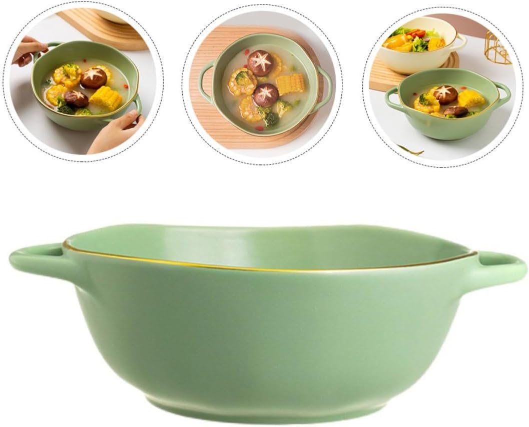 Package List 1 x Salad Bowl Characteristics -Product Info:Double ear baking bowl -Material: ceramic -Capacity: 1200ML bowls with handles - Nonstick and smooth surface of the practical bowl make it convenient to take out the pizza Baking Dish. - Can be used to make pizza, steak, steamed fish and other food soup bowl. - Under high temperature, it will not soften and deform, you can use it without concern kitchen bowl. - Using high grade ceramic material, it is heavy-duty and scratch resistant. - After two processes of cold and hot, the strength is high and it is not easy to deform Double Handle Baking Bowl.Goods Informationbowls It is made of high-grade ceramic, strong and , and .ceramic salad has good high temperature resistance, and you can use it to make delicious baking food.Double Handle Baking Bowl Its craftsmanship is and delicate, is your good choice for shopping.soup bowls with handles This is a high-class bowl with nice appearance and practicality