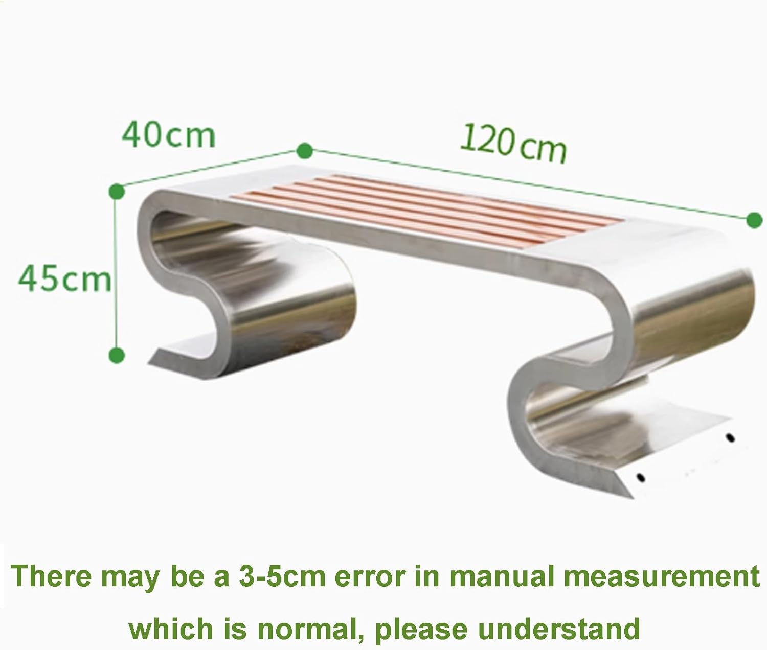 GUQASDV outdoor park bench is an easy addition to your porch, patio, entryway, or sunroom to help with your reading or coffee timeUsage: wood bench could be used as bench outdoor weatherproof, patio furniture, outdoor seating furniture lounge, porch bench seat and patio benches for outdoorsWithout installation: patio benches for outdoors could be used just need to take it out of the packageMaterial: solid wood + stainless steelColor: brown + silverSize: 120x40x45cmNote: 01 There may be a 3-5cm error in manual measurement which is normal, please understand02 Due to different displays or shooting environments, the product may have color differences, please understand