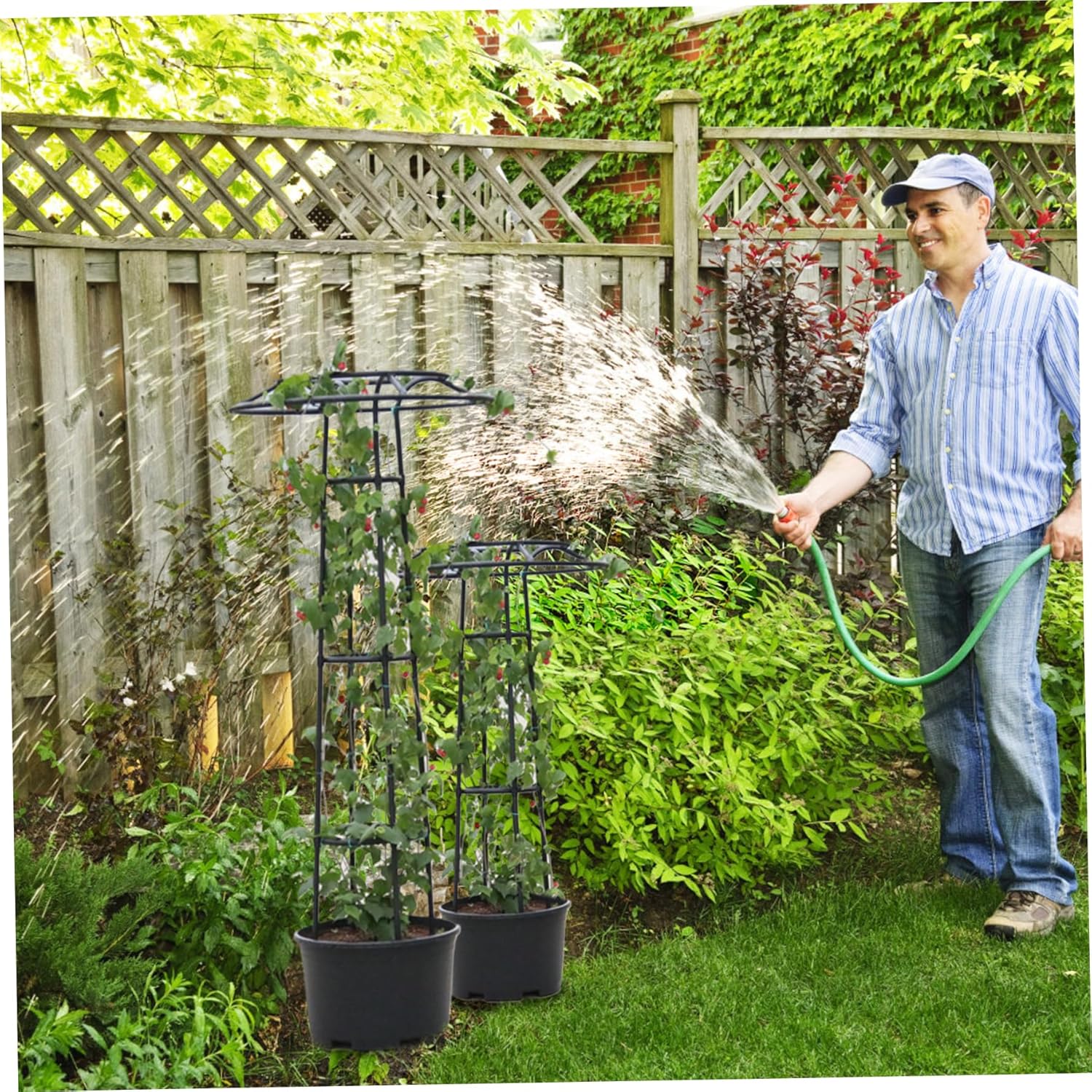 Description: The garden trellis is a perfect addition to your garden, combining functionality and aesthetics. With its exquisite umbrella-shaped design, it not only adds beauty to your outdoor space but also provides excellent support and ventilation for climbing plants. Made from quality iron pipes and stainless steel joints, it is sturdy and built to last. The plastic coating process ensures resistance to high temperatures, corrosion, and rust, making it suitable for long-term use. This garden trellis is particularly suitable for use with planter, providing the perfect support for climbing plants in pots. Its simple design and easy installation make it a convenient option for gardening enthusiasts. Enhance the beauty of your garden and provide support for your plants with this elegant and functional garden trellis. Features:. Garden Trellis for Climbing Plants. -Color: Black. -Material: Metal, Plastic. -Size:. Long: about 145cm/57.09inch, Suitable for with 32cm Opening. Pipe Diameter: about 1.4cm/0.55inch. Note: Manual measurement, please allow slight errors on size. The colors may exist slight difference due to different screens. Package Including 1 Piece Garden Trellis for Climbing Plants.