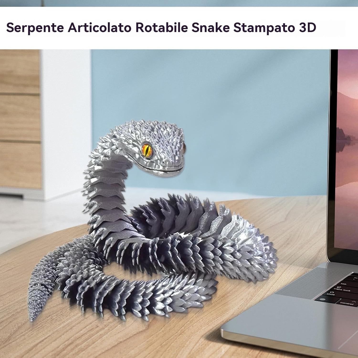 Bring home this 30 inch 3D printed snake, flexible and realistic, designed with articulated segments for added charm. Whether used as a desk decoration, home decor or as an impact gift for parties, birthdays or Easter baskets, it enriches any collection of unique items. Specification: Length: approx 75cm/2.5ft Material: Polylactic Acid Technology: 3D printing of the products: 1 x 3D printed snake (random eye colour). Note: Due to different lighting and screen settings, the colour of the product may be slightly different from the picture. Due to manual measurement, please allow 1-3 cm difference in size.