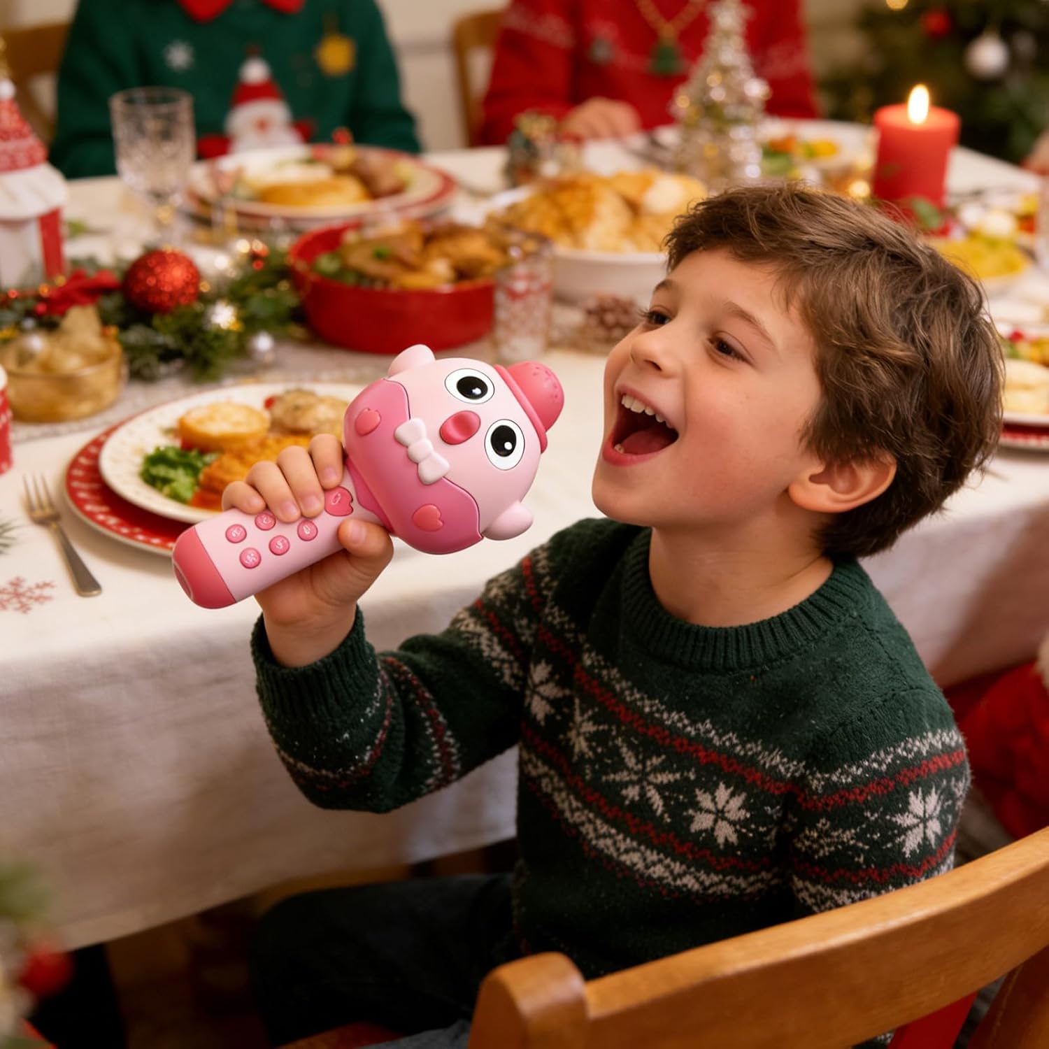 This musical toy is designed with a fun chicken shape and features a 2 in 1 function. Equipped with LED lights, it creates a vibrant atmosphere perfect for boys and girls to enjoy at home or in their room. The voice changer adds an element of and entertainment, making it ideal for festive occasions like Christmas, birthday parties or family gatherings. This versatile musical toy enhances playtime while serving as a decorative accessory that seamlessly integrates into diverse environments. Specification Material: ABS Product size: about 11x10x2 1cm/4.33x3.94x8.27inch Capacity: 300 ml. Charging: about 3 hours Continuous playback: about 5 hours Weight: about 290g Package List: Toy microphone*1 USB Charging Cable*1 Note: Due to different lighting and screen settings, the colour of the item may be slightly different from the picture. Due to different manual measurements, please allow 1-2cm size difference.