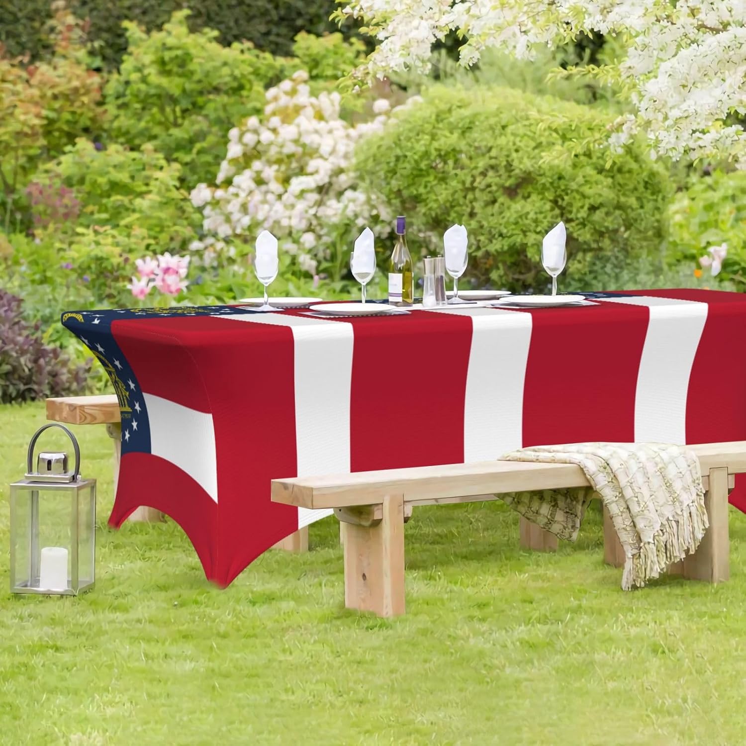 • Easy Installation & Secure Fit: Our Georgia Flag Print Rectangular Fitted Tablecloth Comes With Foot Pockets At Each Corner, Enabling An Easy And Secure Installation Process. It'S Designed To Fit A 6-Foot Rectangular Table (30in X 30in X 72in), Offering A Seamless Look.