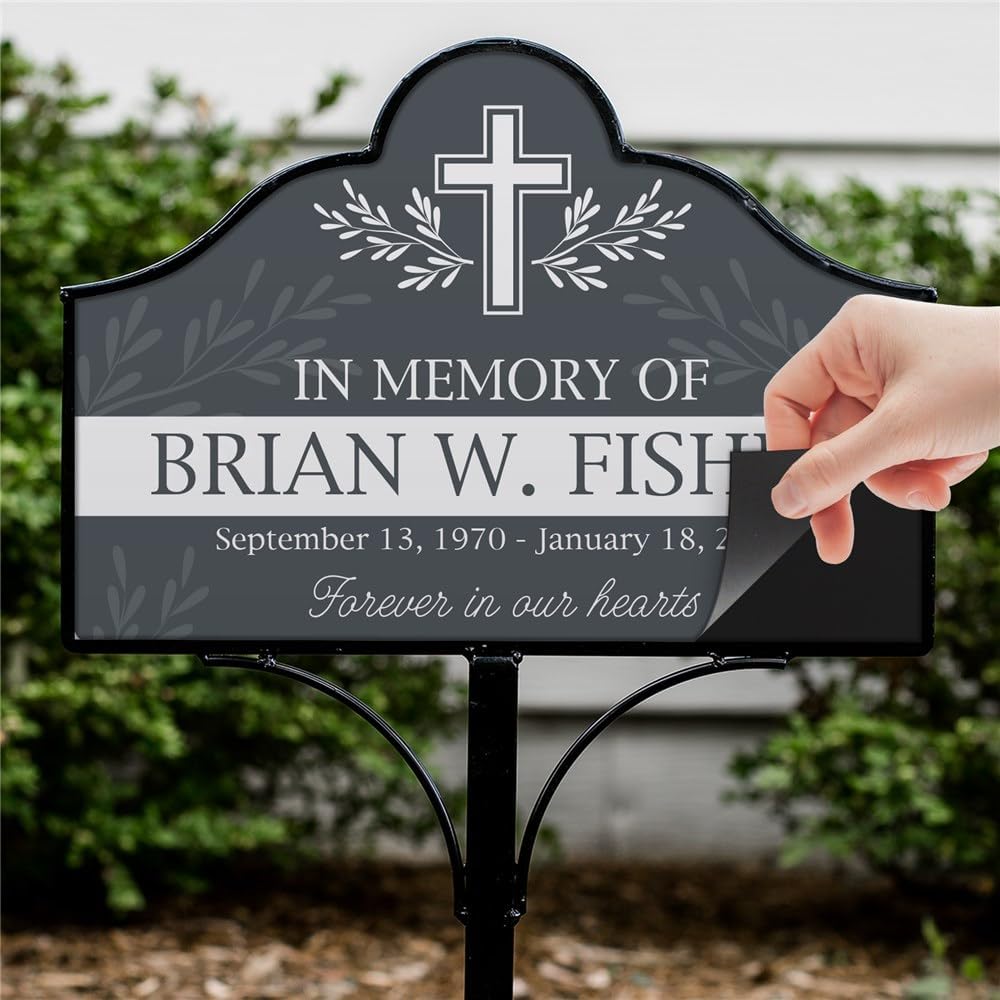 This Personalized Cross With Leaves Memorial Magnetic Sign Set can be placed in your yard in honor of your loved one. Create these personalized signs for your yard, front walkway or for personalized grave markers with any name and memorial dates. Makes the ideal gift to honor your loved one.