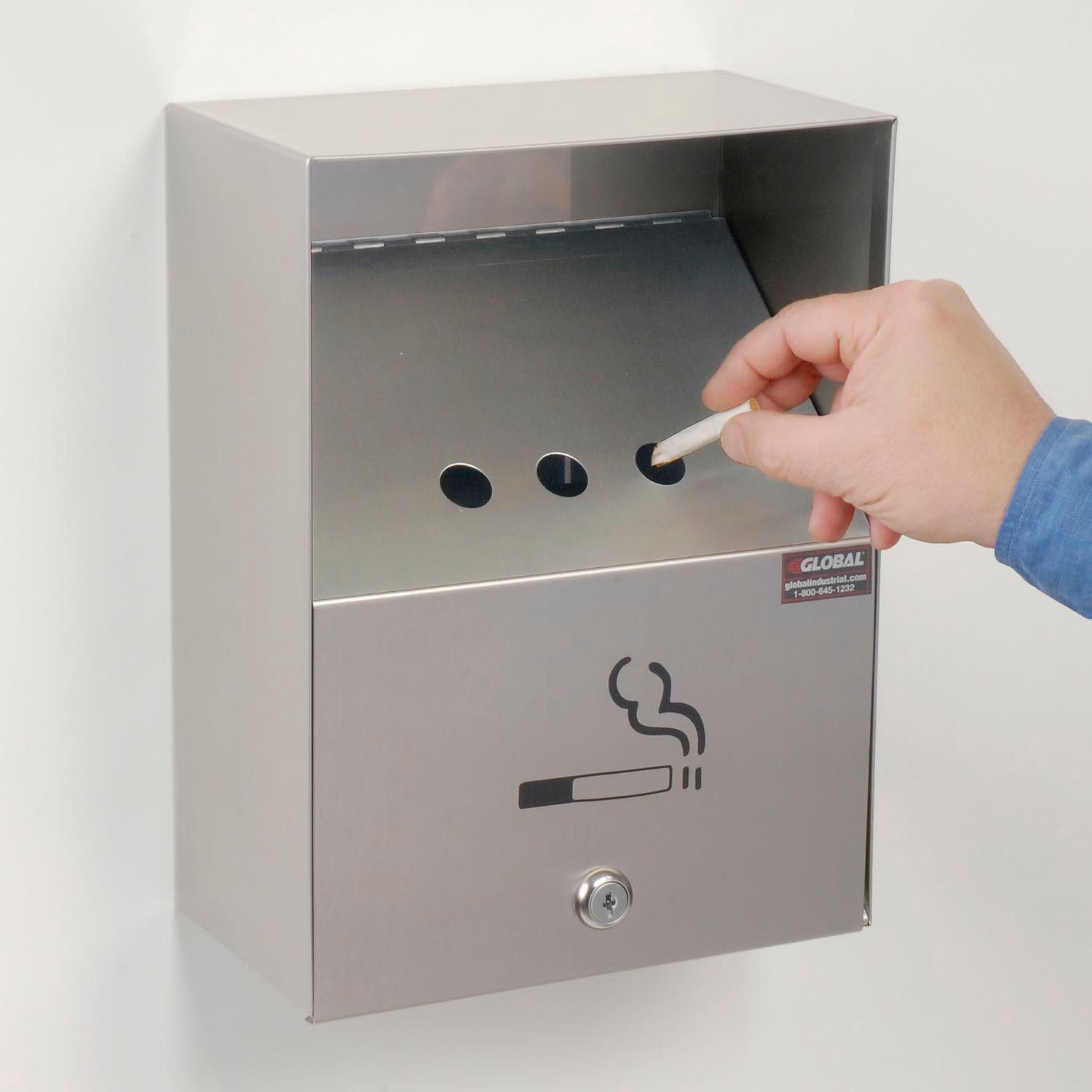 This weather and fire resistant Wall Mount outdoor ashtray is made of 20 gauge stainless steel. The 215 cu. inch inner receptacle holds over 700 butts for minimal maintenance and is easy to remove and empty. Mounts to cement surfaces. Measures 9"W x 5"D x 13"H., Lot of 1