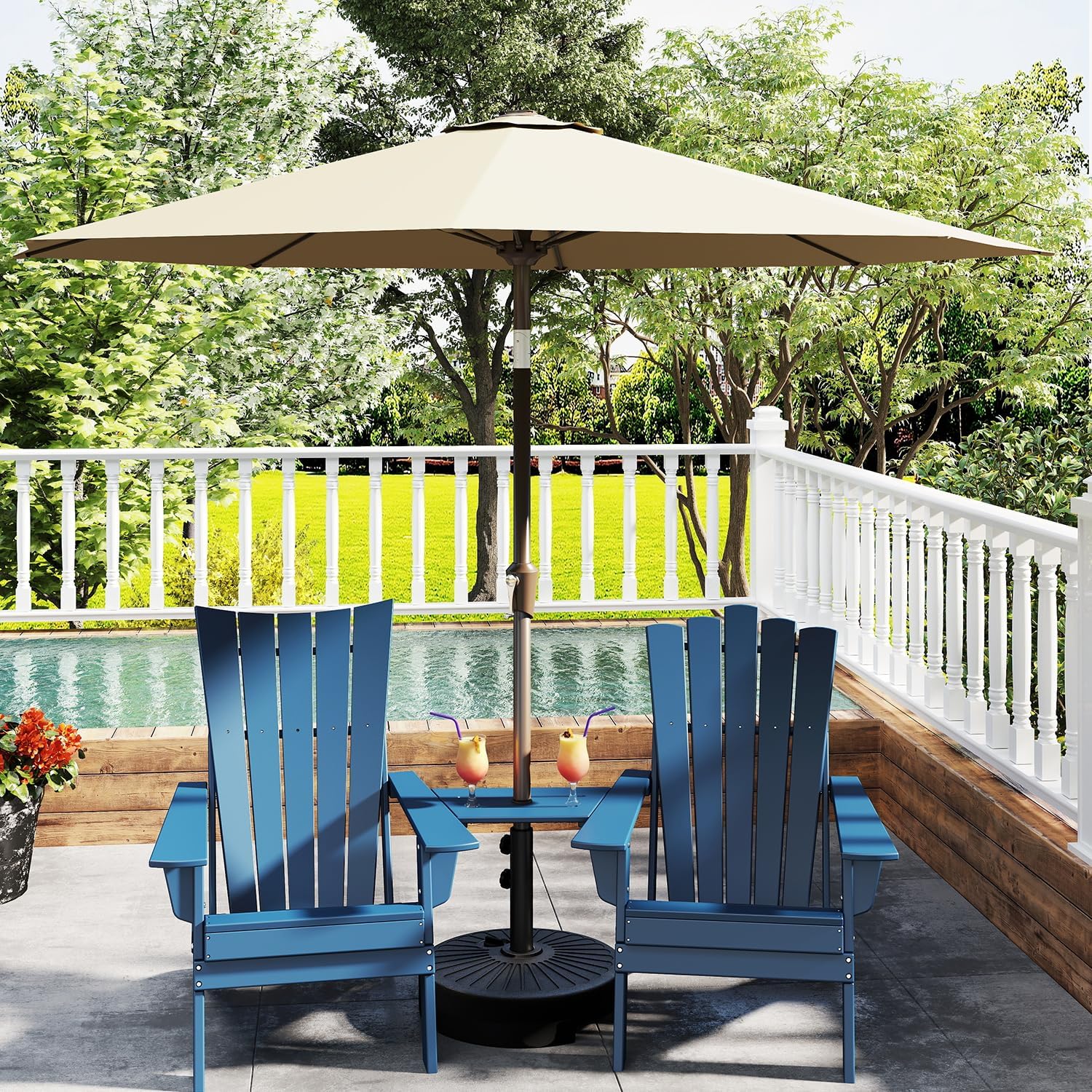 GREENVINES 20" Patio-Umbrella-Base | Plastic | Outdoor Market Umbrellas Stand | Water & Sand Fillable | 50 LBS Weight Capacity | w/ 2 Adjustable Knobs | for Poolside Deck Backyard | Round | Black