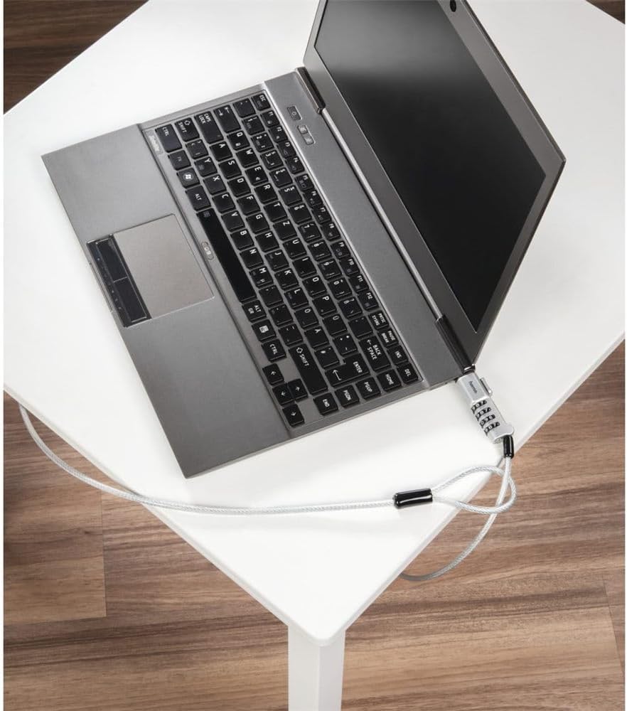 Discover the Hama Nano laptop lock, equipped with a 4-digit combination lock for maximum security. This sturdy steel lock is specially designed to protect your laptops from theft, whether in the office, library or on the go. Easy to use, simply attach the heavy-duty steel cable to a secure anchor point and wrap the lock to your laptop. Thanks to its 4-digit programmable combination, you can choose a custom code for keyless protection, eliminating the risk of key loss. Its compact size and lightweight design make it a practical and discreet companion for carrying your device with peace of mind. Protect your laptop with the Hama Nano Lock , a reliable and effective security solution to prevent theft and ensure peace of mind. Protects laptops and other devices with a standardized nano slot from theft Nano combination padlock: suitable for all devices with standardized nano locking slot Lock code: 4 digits, allowing 10,000 combinations Strong steel cable: 4.5mm diameter anti-theft protection Easy to use: The laptop lock can be flexibly attached to furniture such as tables, chairs etc. Cable lock made of very resistant hardened steel and covered with plastic. Hook and loop closure cable ties prevent cable tangling Technical specifications: Colour: Silver/Transparent 4 digit numeric code Material: Steel, Plastic Safety 4-digit combination Type Lock Cable outer diameter 4.5 mm Length 180 cm Weight 135 g Areas of use Laptop Compatibility