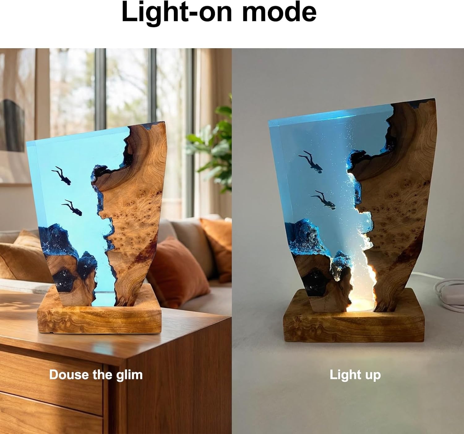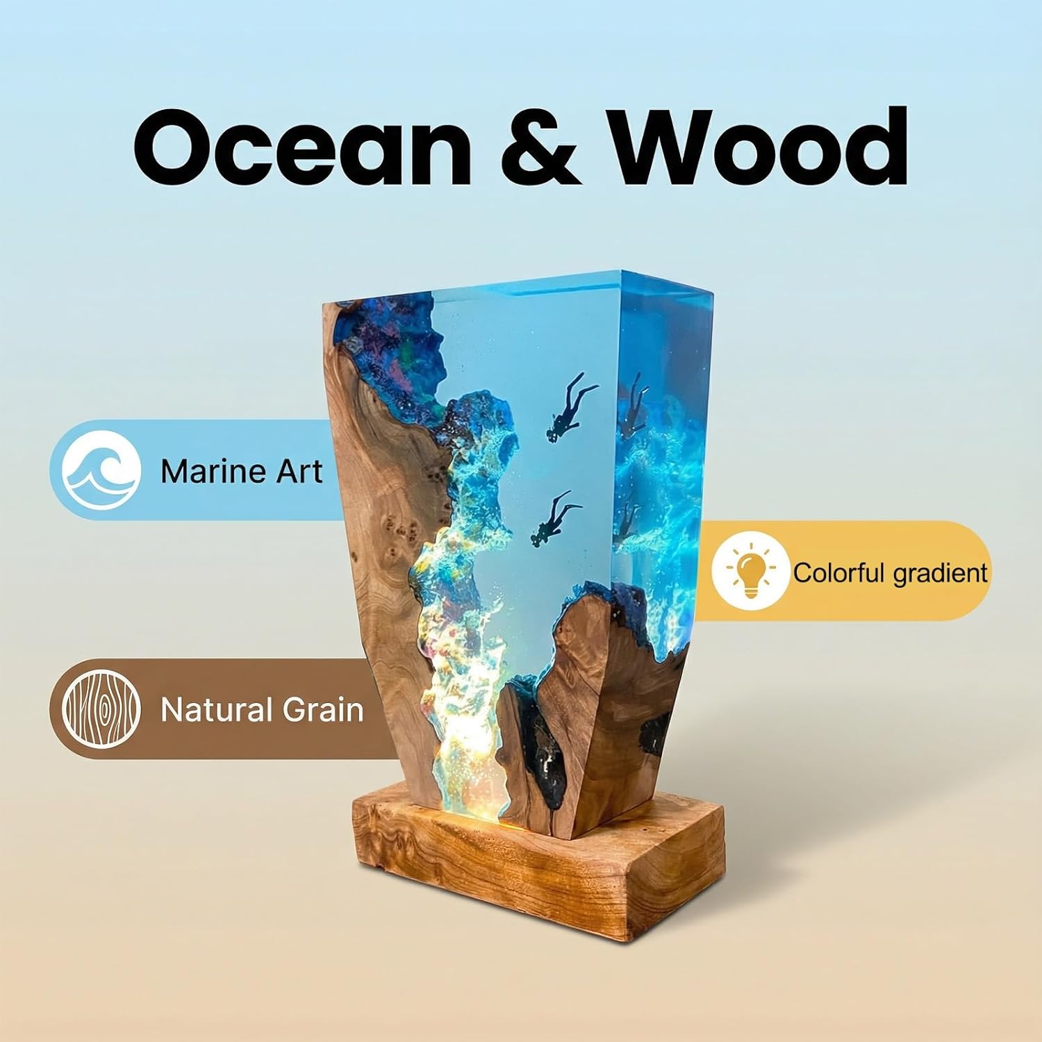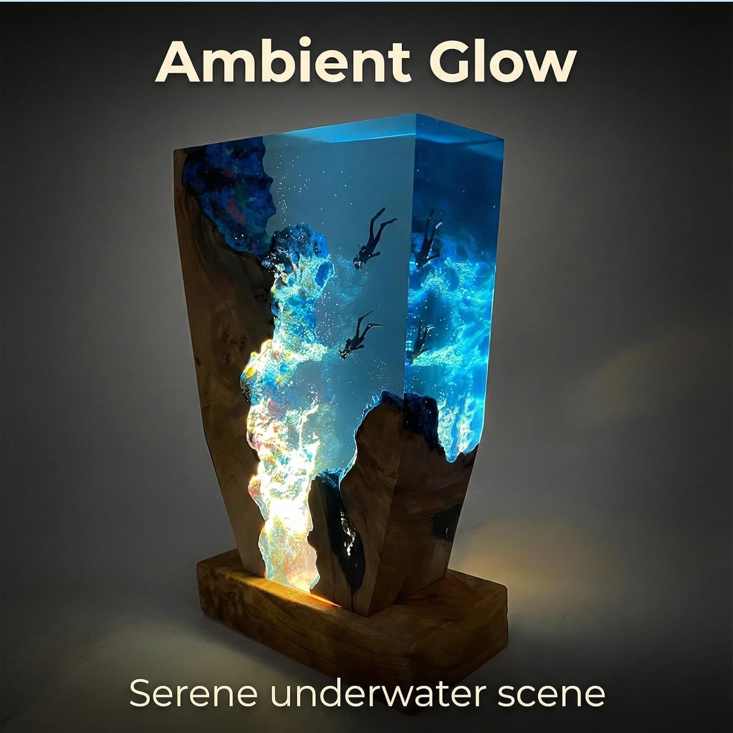 Specification:Color: Blue transparentSize:Packing small: 30*21*7cm Medium: 32.5*23.5*7cmFeatures:underwater diving adventure, relaxing mood, cool thingsPackage Content: 1pc *resin lampAttention:If you have any questions about the product, please feel free to contact us. We will reply to you as soon as possible.