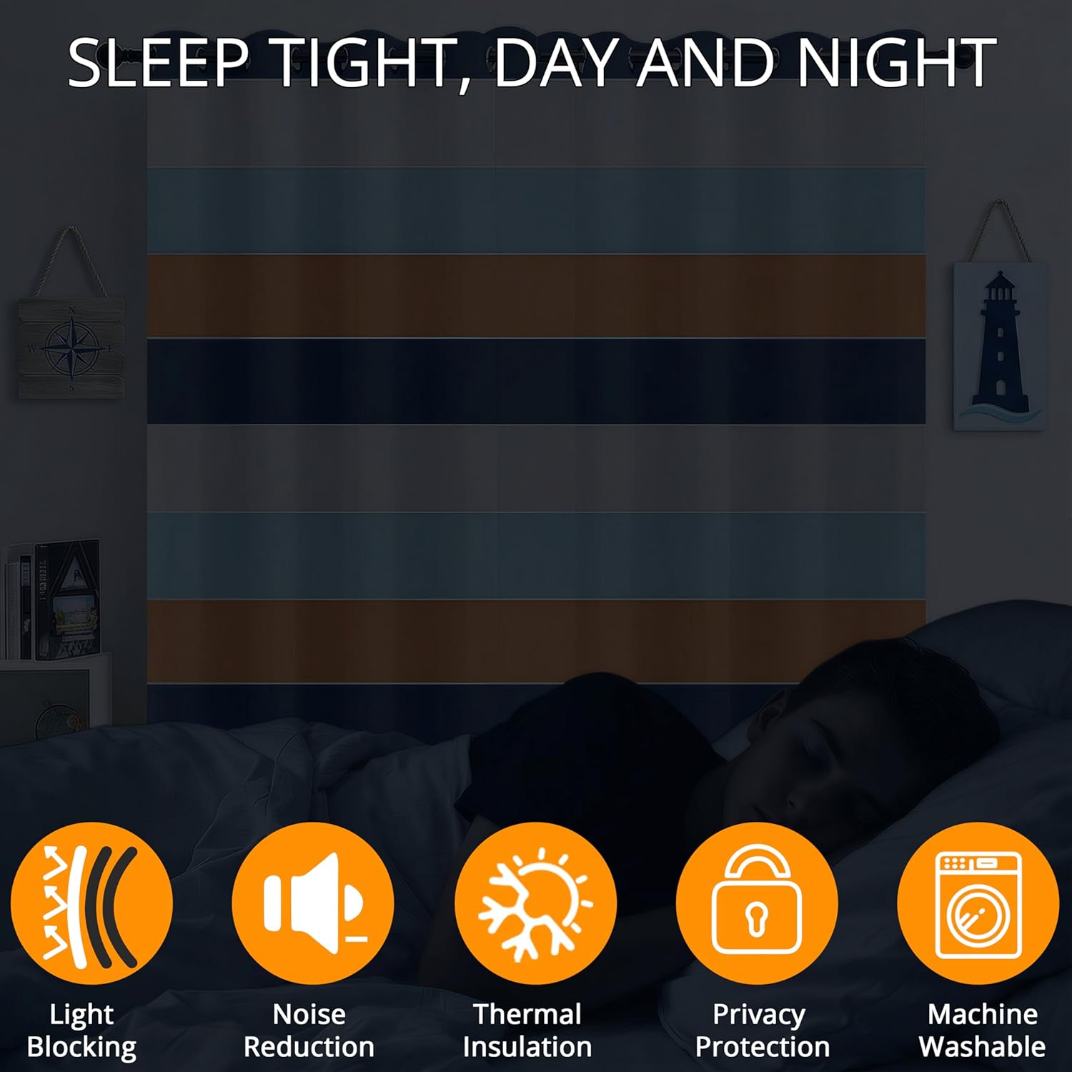 Bring an easy, breezy coastal vibe into your space with the Coastal Boy Horizontal Stripe Blackout Curtain Panel. Inspired by ocean colors and clean nautical lines, this stripe design adds a crisp, modern look to boys’ rooms, nurseries, and beach house-style interiors. Made with blackout room-darkening fabric, it helps block harsh light and supports better rest and privacy. The thermal insulated construction helps minimize temperature changes, while the thicker material helps reduce noise from outside for a calmer environment. Designed for everyday convenience, the grommet top fits most standard curtain rods and glides smoothly when opening and closing. Easy-care fabric makes cleaning simple—just machine wash as needed.