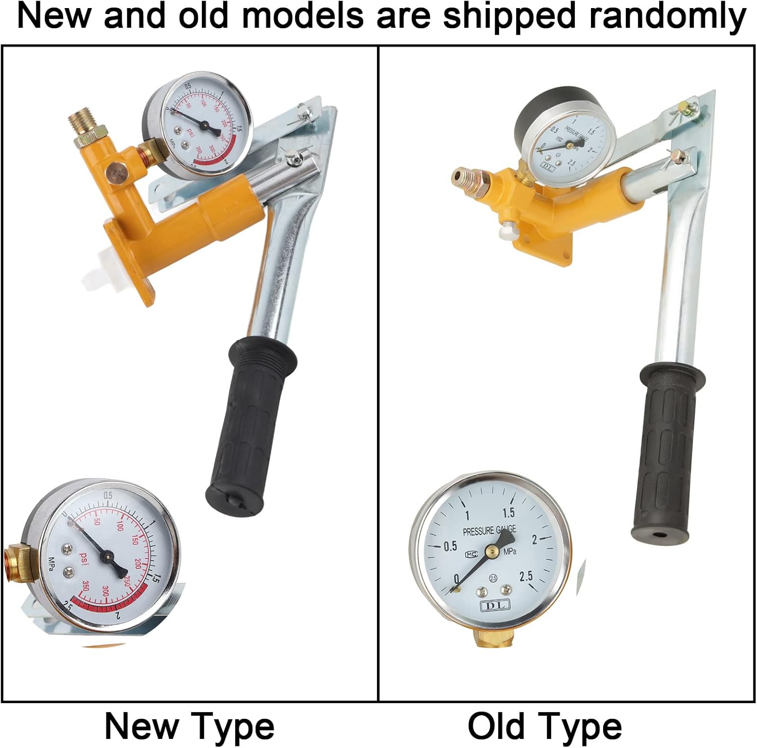 Specifications:Material: aluminumPressure column outer diameter: 2.8cm / 1.10inPressure: 2.5MPa: 13ml / timeColor: YellowWeight: 2090gHow to use? (Instructions)1. Connect the water hose to the water pipe2. Close the switch when the pipe is filled with water and the air is discharged3. Fill the with water, and then tilt the plate up and down, began to test pressure4. When the pressure readings rise to the need for pressure, you can stop the pressure;5. After stopping the pressure, if the pressure does not drop on the pressure it can prove that the pipe pressure performance is good, on the contrary, it proves that the pipe sealing performance is not good,The specific steps of the test pressure are as follows:1. The hot and cold water pipes connected together with the hot and cold water to form a circle, into a tube, and test the pump connected to any one outlet can be the pressure pointer is 0 pressure. When all the water pipes are fully welded before they can test pressure, in the pressure before the closure of all the plug, close the water inlet valve.2. When measuring pressure, shake the jack until the pressure pointer to 0.9-1.0 or so, that is the current pressure is 3 times the normal water pressure3. Keep this pressure for a certain amount of time. Different water pressure measurement time is not the same, PPR, aluminum plastic PPR, steel PPR and other welded pipe is 30 minutesPackage included:1 x Test pump1 set x AccessoriesNote:Please note that the new type and old type of this product will be sent randomly, and make sure you will not mind before ordering.
