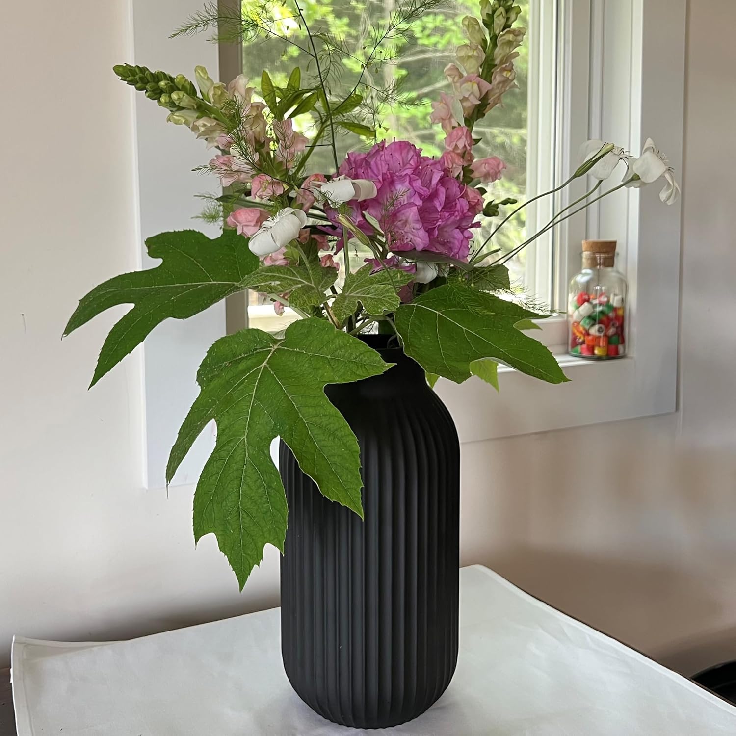 Ribbed and presenting a sleek silhouette, this eye-catching vase is inspired by Nordic designs. Layer this piece upon a shelf to offer depth and dimension, or create an alluring centerpiece for consoles or dining tables with fresh or dried botanicals. Handcrafted from lacquered glass with a fine matte black finish, this vase exudes elegance and sophistication. Well-sized, this artful piece measures 6 D x 11.75 H inches (15 D x 30 H cm) and weighs 2 lbs (920 grams). Versatile Decor: This sculptural vase complements a variety of color and design trends, making it a versatile addition to any home decor. Modern Classic: Architectural-inspired, this vase brings interest to empty spots on a shelf or tops a stack of coffee table books with style. Perfect Gift: Always a welcome gift, this vase is ideal for housewarmings, birthdays, weddings, or any special occasion.