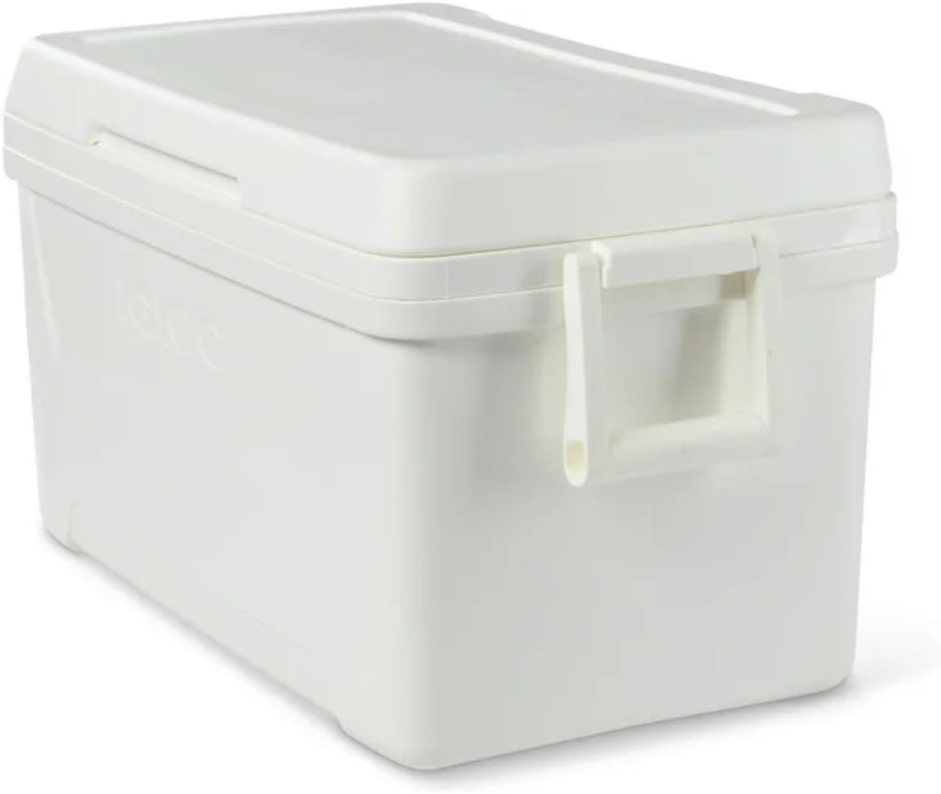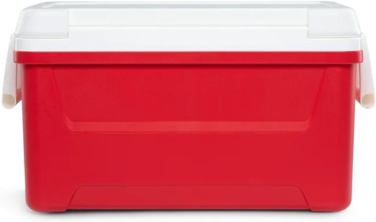 The Igloos Laguna 48-Quart Hard-Sided Ice Chest Cooler in Red is the ultimate solution for keeping your food and beverages ice-cold during outdoor adventures. With a generous 48-quart capacity that holds up to 76 cans, this cooler provides ample space for family gatherings, camping trips, tailgates, and beach days. Featuring advanced Cool Riser Technology and Ultratherm insulation, this cooler delivers superior cooling performance that keeps ice frozen longer, ensuring your food stays fresh and your drinks remain refreshingly cold throughout the day. The durable hard-sided construction provides exceptional stability and protection, while the convenient swing-up handle allows easy one-handed carrying. Measuring just 25.71" x 14.12" x 14.25" and weighing only 8.4 lbs, this compact cooler fits easily in vehicle trunks and storage areas without sacrificing capacity. Proudly manufactured in the United States, the Igloos Laguna cooler combines quality craftsmanship with reliable performance. The vibrant red color adds an attractive, eye-catching touch to any outdoor setting, making your cooler easy to spot among other gear. Whether you're heading to the beach, campsite, or backyard party, this versatile cooler is the perfect companion for all your outdoor activities and gatherings.