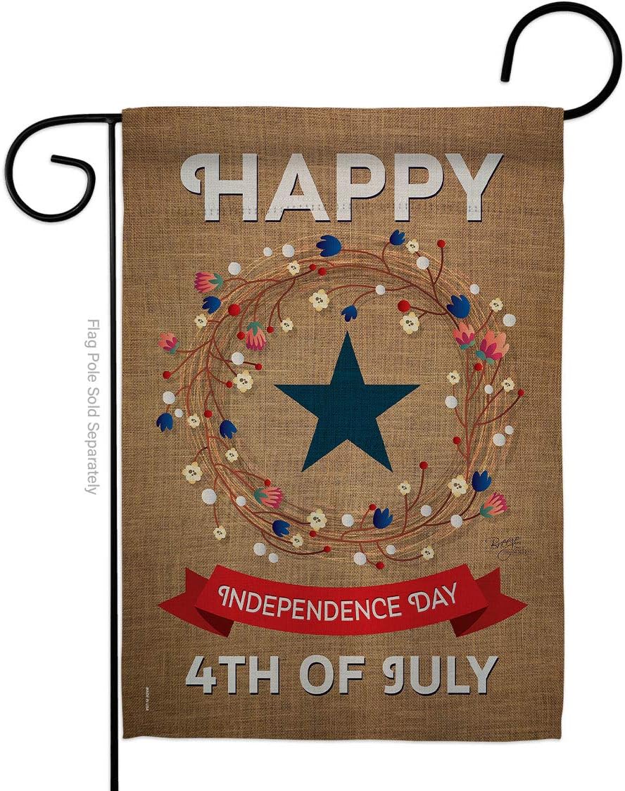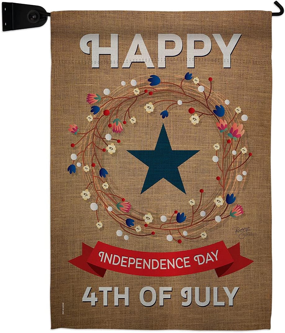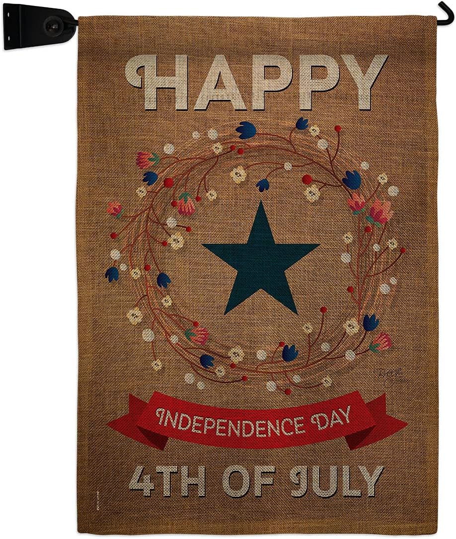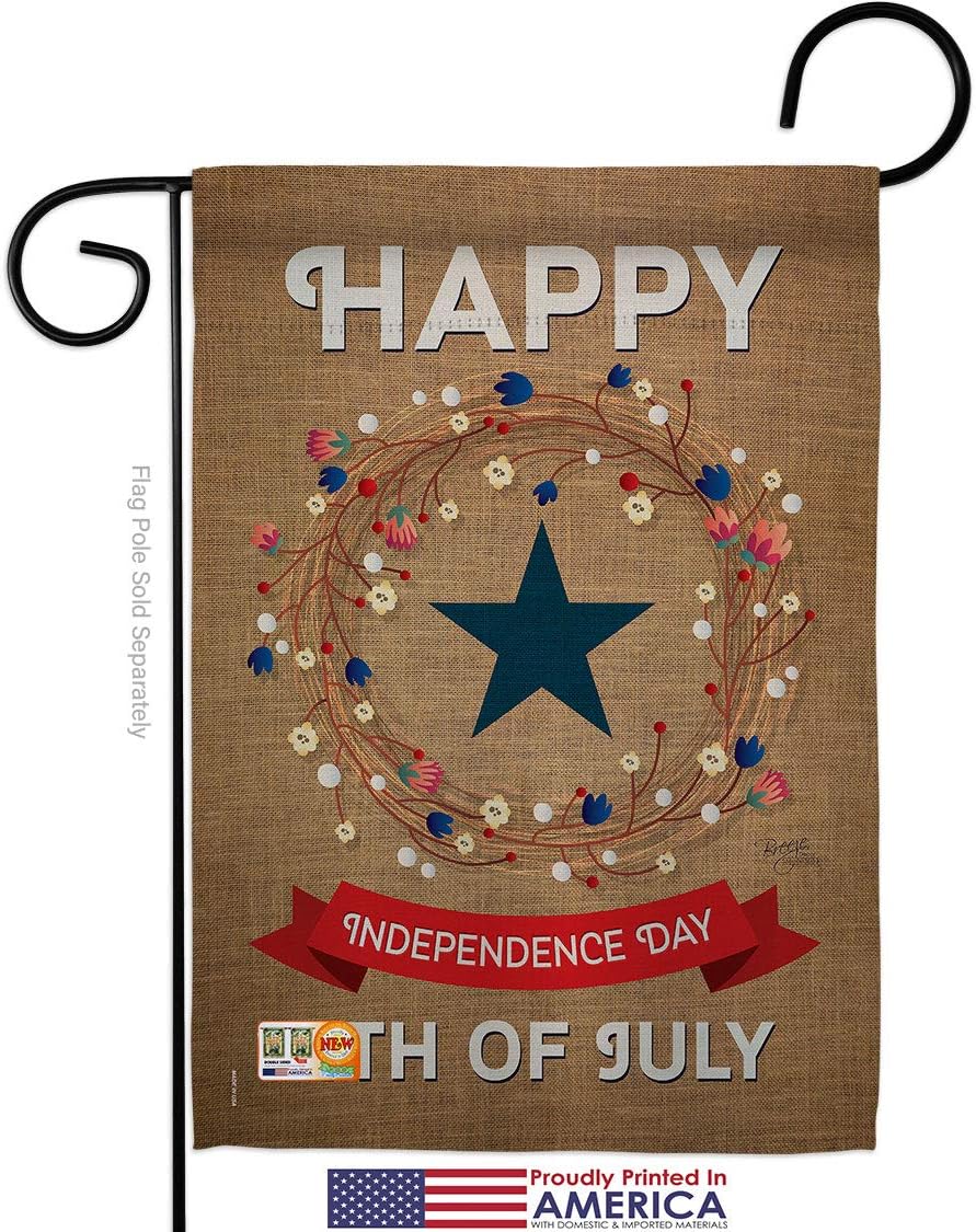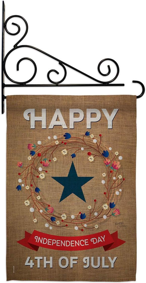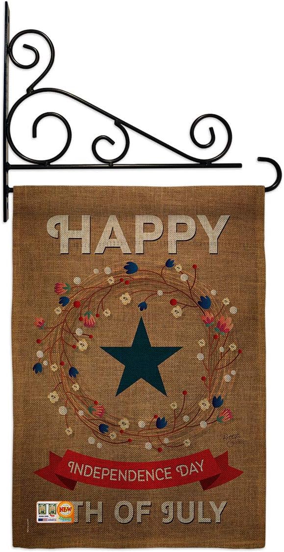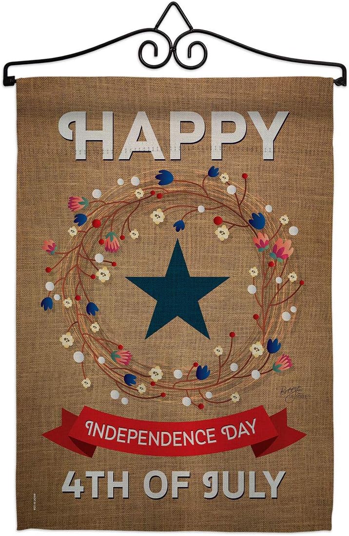 Fourth of July Beautiful Mini Garden Flag with Metal Garden Banner Pole Stand - Complete Set with Fansy Wall Bracket - 12" x 16" Power Coated Metal Flag HolderBreeze Decor have variety of Garden Flag Set for all occasions. Uniquely design for hanging indoor or outdoor use. We are committed to offering you exceptional values. Our customers enjoy displaying our Garden Flag Set for longer periods. Specification: Theme: Fourth of July Size: Garden Flag Set 13" x 18.5" Size: Metal Fansy Wall Bracket Print: Double-Sided Readable: Readable Single Side Material: Weather Resistant Polyester 300 D Stitching: Double Stitched Display: Vertical Hang Type: Sleeve Artist: Schal Lee Special Features: Origin: Made In USAPackage Include: 1 pc x Mini Garden Flag 13" x 18.5" 1 pc x Metal Yard Banner HardwareFor more than a decade, we’ve been dedicated to manufacturing flags with no comparison in quality and beautiful designs. Our flags are made with our Pro Guard material that is soft to the touch and designs can be read correctly on the flag. A feature that our customers will love. We are committed to using eco-friendly inks that won’t leave a foot print in our environment. MPN: BD-FJ-GS-111068-IP-P3-03-S-US14-BD 11068 61068