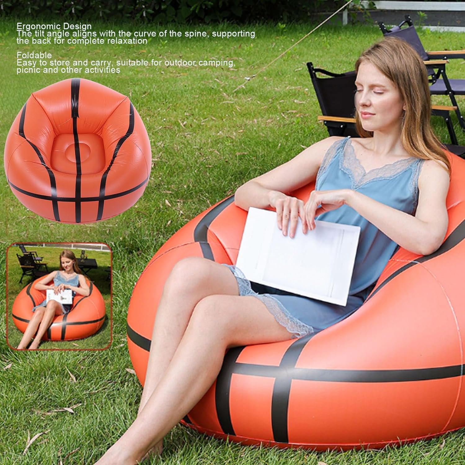 1. Comfortable PVC Material: Crafted from premium PVC, this inflatable soccer ball chair is comfortable and strong enough to support weight, allowing you to read or watch movies on it with ease. 2. Ergonomic Design For Relaxation: Features an ergonomic design with a tilt angle that follows the backline, providing full back support and enabling complete relaxation whether sitting or lying down. 3. Eye Catching Sports Style: Boasts a unique orange basketball appearance that is visually striking and is sure to appeal to sports enthusiasts and anyone who loves an athletic aesthetic. 4. Portable And Easy To Use: Compact and convenient, the inflatable lounge chair can be quickly inflated and deflated, making it effortless to move and store when not in use. 5. Versatile Usage Scenarios: Ideal for various indoor and outdoor settings including the living room, bedroom, balcony, garden, pool, beach, or picnics, offering fun and comfort anywhere. Specification: Item Type: Inflatable Basketball Chair Material: PVC Weight: Approx. 840.00g / 29.63oz Inflated Size: Approx. 110x110x85cm / 43.31x43.31x33.46in Color: Orange How to Use: Inflate before using PackageList: 1 x Inflatable Chair Notice: 1. When opening the packaging of inflatable chair, there may be a slight PVC material odor. This odor is harmless to the human body and children. You can open the product and place it in a well ventilated area to naturally dissipate the smell. After being filled with water, the odor will be further reduced.2. After the first inflation of inflatable chair, the material will stretch due to the pressure of the air, causing the volume to increase slightly. You may feel that the product appears a bit deflated, but this is normal. Just fill it with air. Inflate until the material's creases are not very noticeable (usually 80 to 90% full). In winter, the material may become slightly harder, so inflate it to 80%
