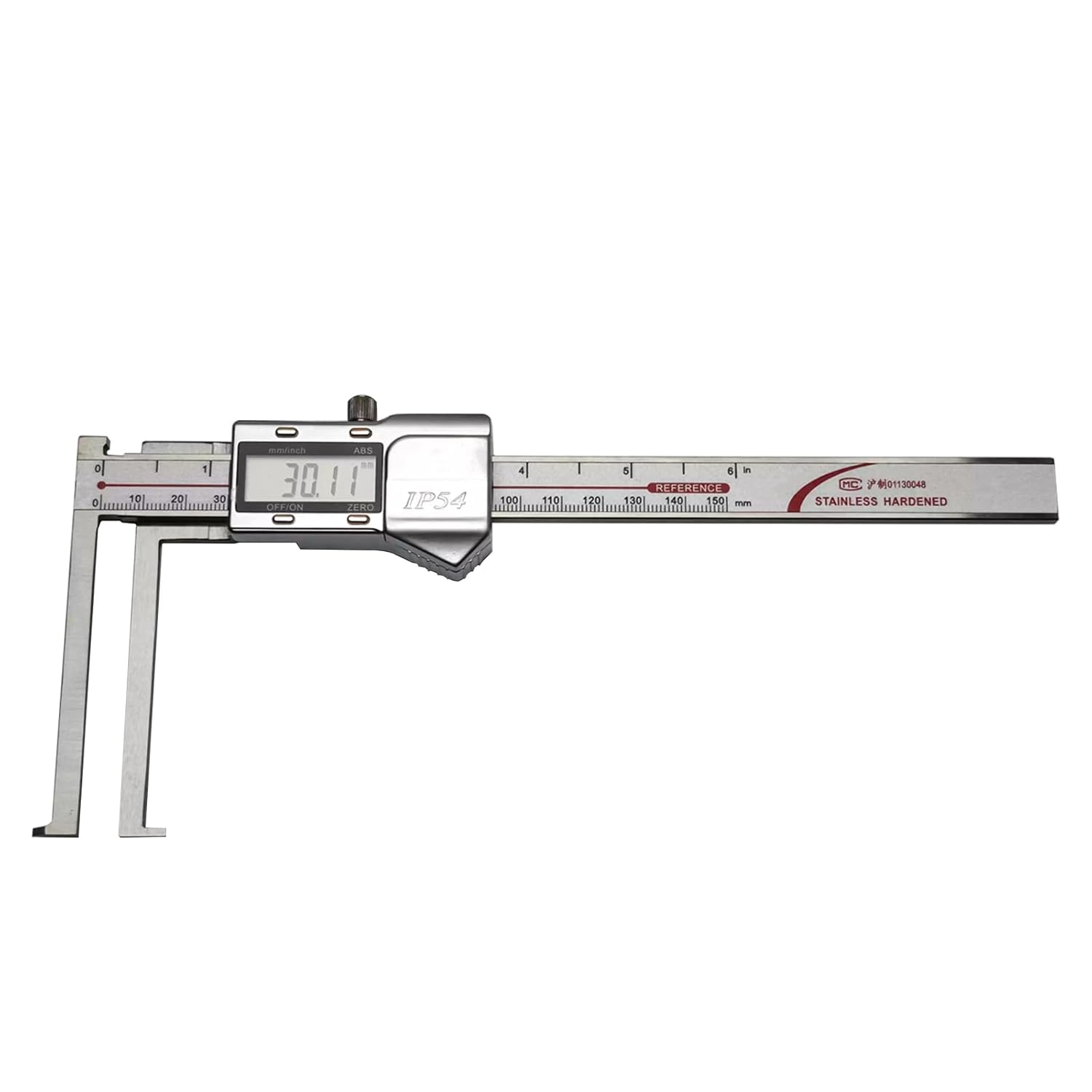 The Digital Caliper with Long Jaws is engineered for precision measurement of internal grooves, slots, recesses, and steps. With IP54-rated protection, it resists dust and water splashes, making it perfect for demanding workshop environments.Built from hardened stainless steel, this caliper offers smooth sliding, high durability, and consistent accuracy. The large LCD display allows quick inch/mm conversion and easy reading, while the zero-reset function and automatic shut-off enhance usability and battery life. Whether in metalworking, woodworking, or inspection, this long jaw caliper delivers accuracy, durability, and protection you can rely on.