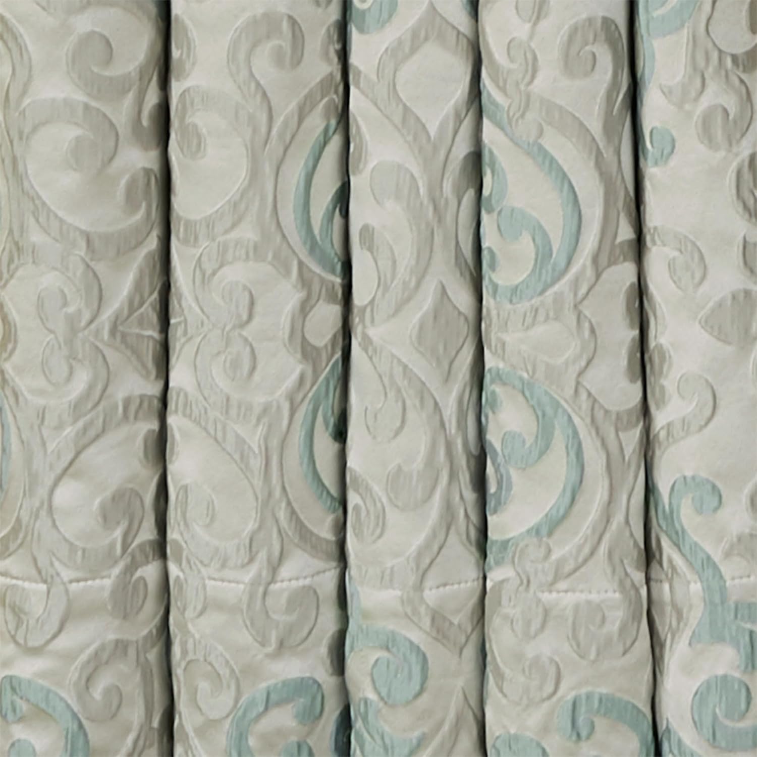 | Additional Features | Elegant jacquard-woven scroll designs in spa and silver gray. |