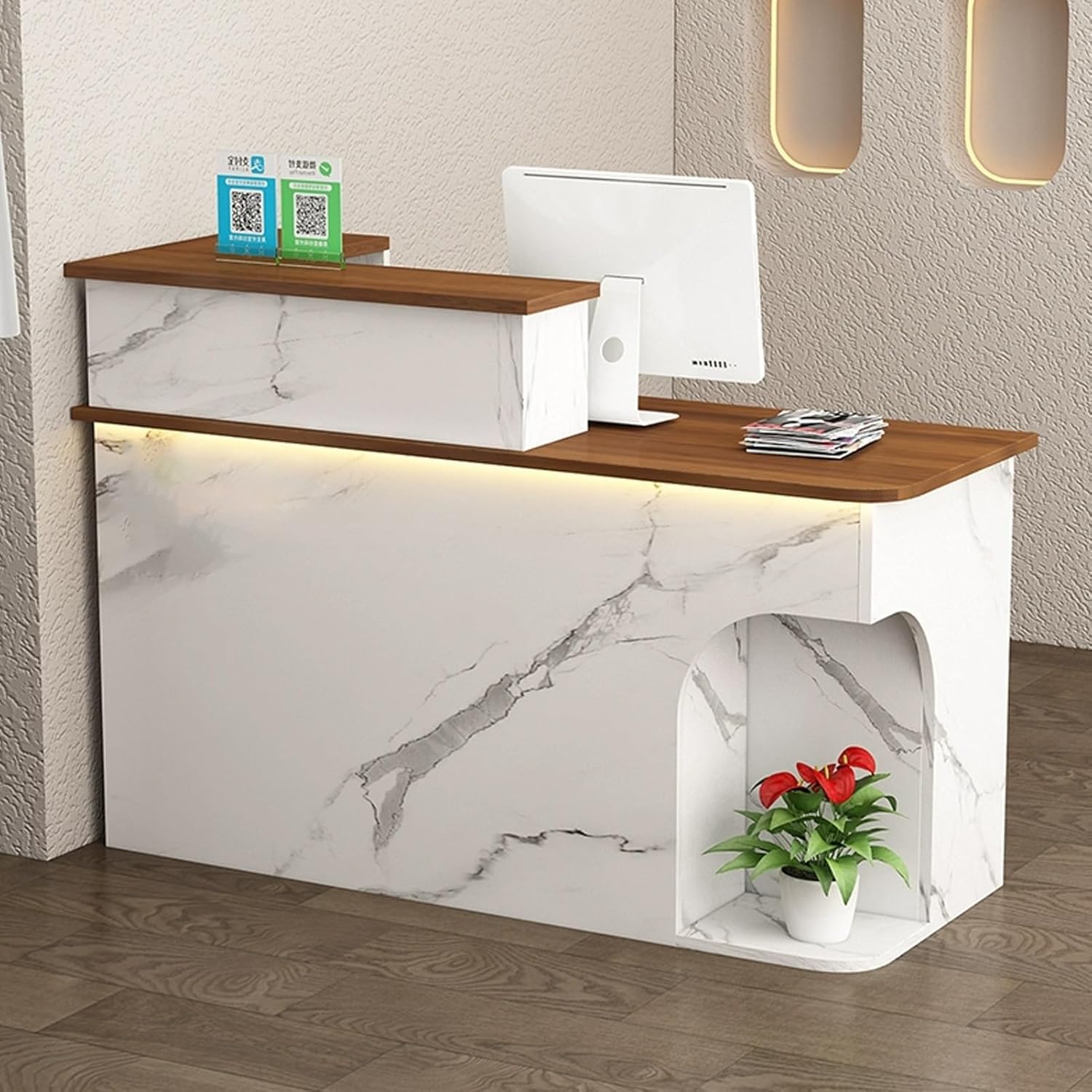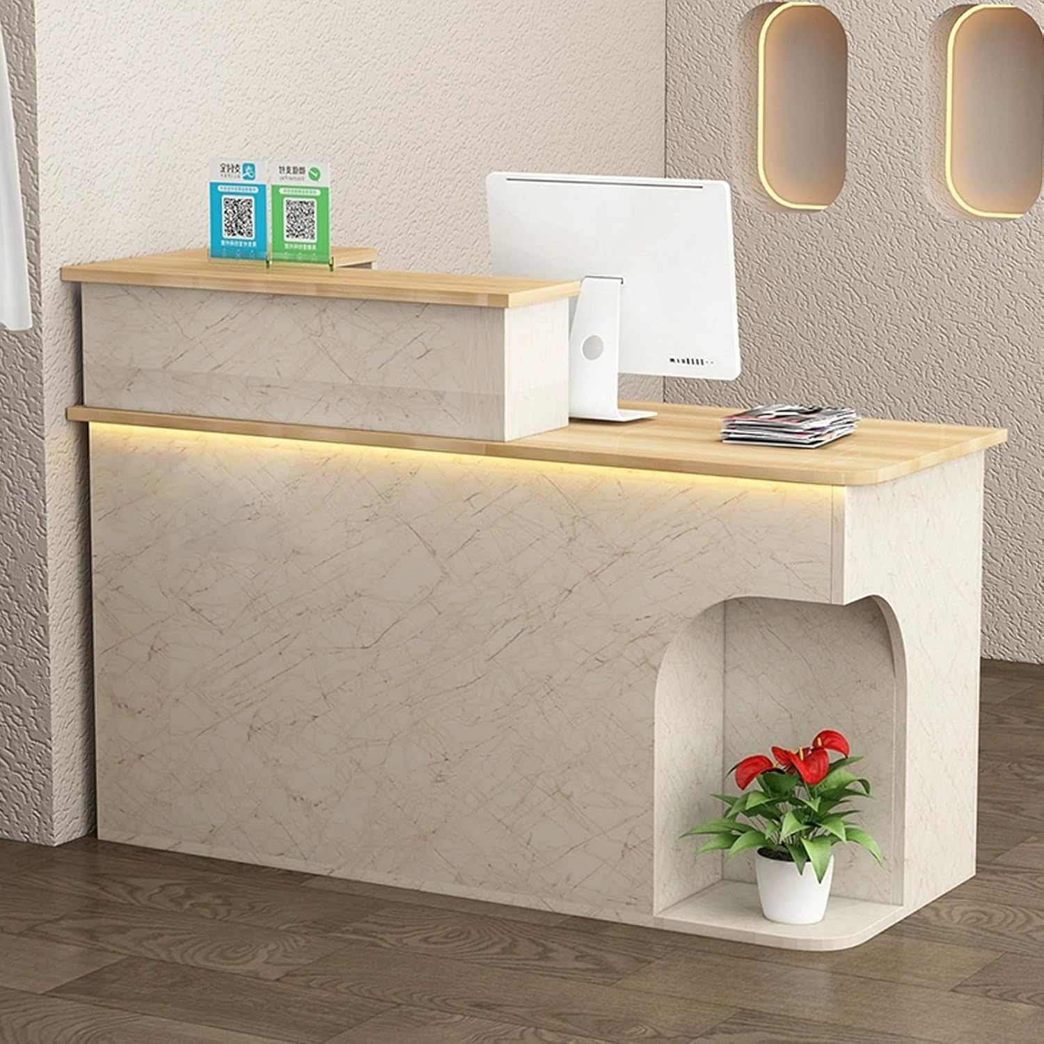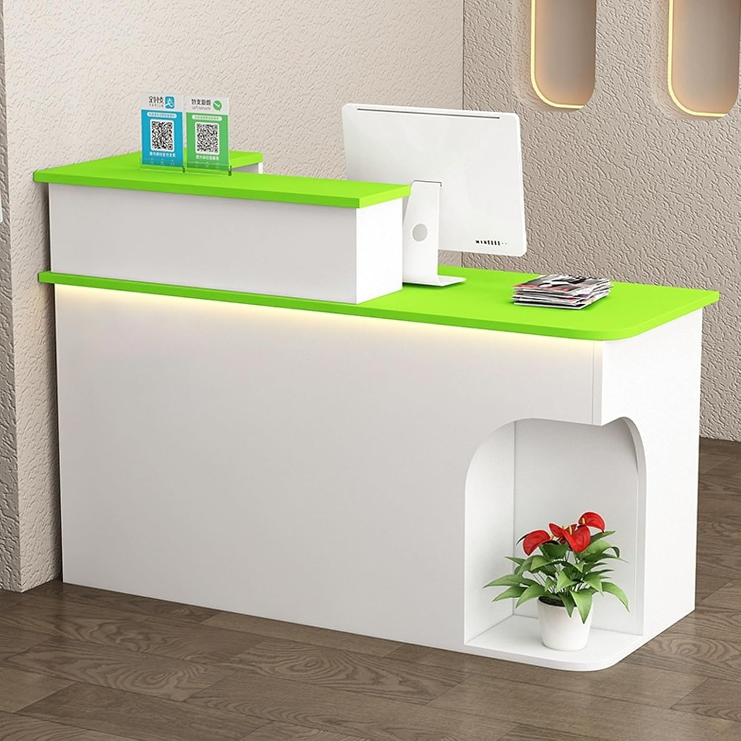 JKGHK retail counter is made of thickened environmentally friendly board material, which is strong in load-bearing and safer.The counter table adopts a rounded arc design, which is beautiful and exquisite, making the simple and atmospheric appearance more design-oriented.Widen the desktop and design high and low display tables. The high table can be used for storage, and the low table can be used for rest.Master of communication, refuses to be messy and keeps the desktop clean.Specifications:Color: Cream A , Cream , White A , White A+Gray , White A+Brown , White A+Black , Natural , White , Gray , Dark Gray , Black , Brown , Red , Green , Blue , Orange , YellowMaterial: WoodInstallation or not: YesOverall Dimensions: 80/90/100/110/120/130/140×55×100cm / 31.4/35.4/39.3/43.3/47.2/51.1/55.1×21.6×39.3inNote:1. There are only Reception Desk, other products are shooting props;2. Note: Due to the particularity of the furniture, there will be slight errors in the finished product, which is normal. The data is for reference only and must be based on the actual product. We hope for your understanding!3. While we display colors as accurately as possible, due to differences in computer monitors, colors may vary.