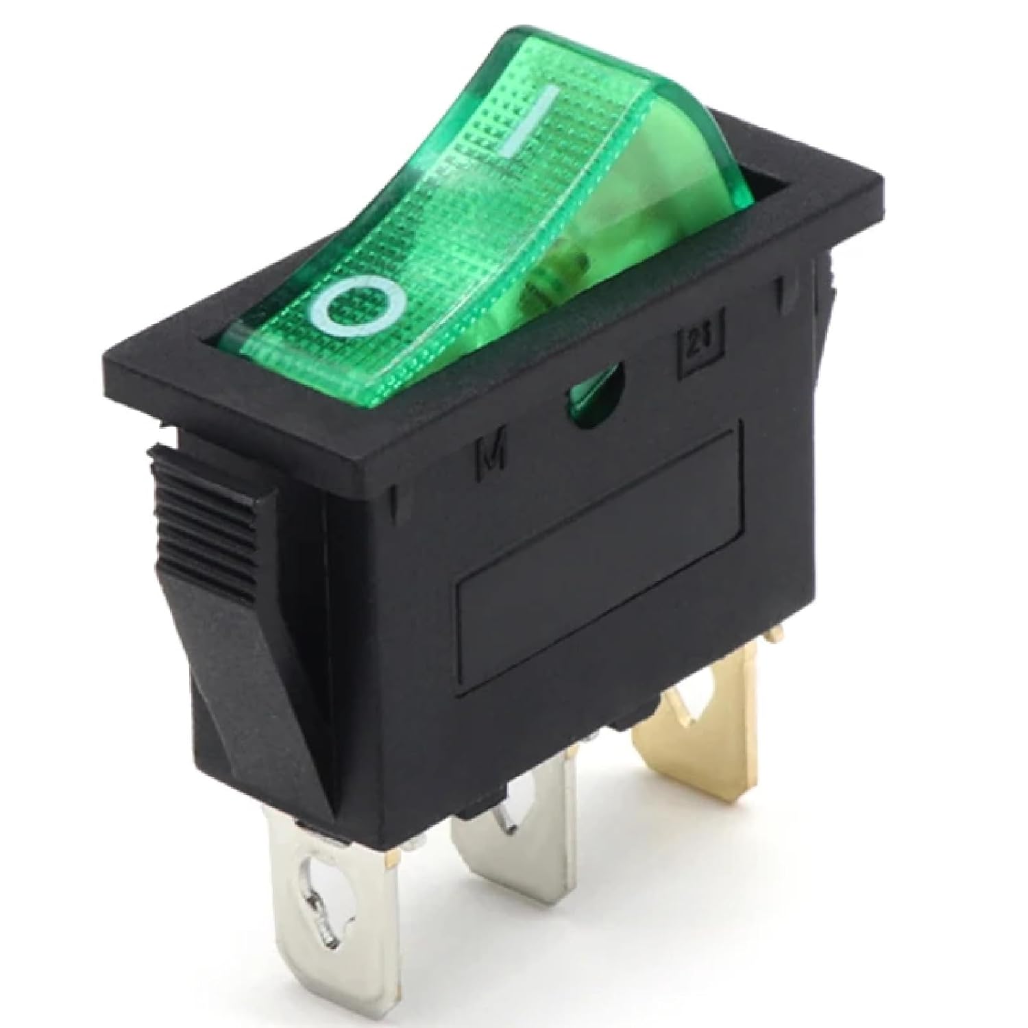 This heavy-duty KCD3 series rocker switch is engineered for demanding electrical applications in marine vessels and automotive systems. Featuring a robust design with illuminated indicators in red or green, this switch delivers reliable ON-OFF functionality with options for 2 or 3 position configurations. The switch boasts impressive power handling capabilities, rated for 16A at 250V or 20A at 125VAC, making it suitable for high-current applications. Its durable construction includes a secure rocker mechanism that provides clear tactile feedback and visual confirmation of the switch position. The compact form factor allows for easy panel mounting, while gold-plated terminals ensure excellent electrical contact and corrosion resistance. Perfect for controlling vehicle accessories, boat electronics, or industrial equipment, this switch combines professional-grade performance with long-term reliability. The textured surface provides good grip, while the illuminated rocker makes operation intuitive even in low-light conditions.