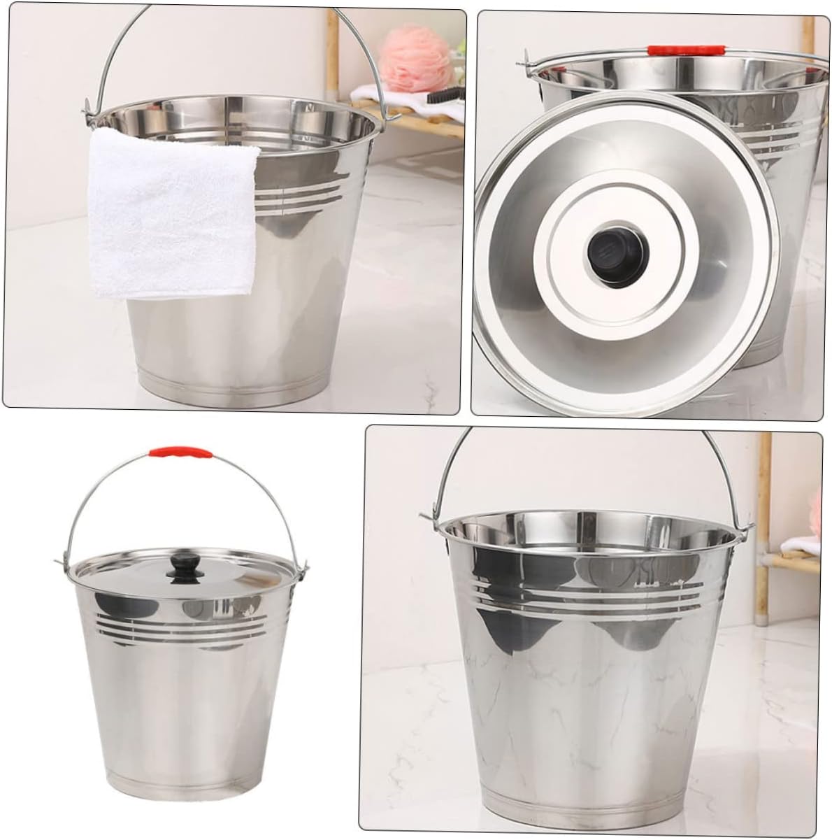 Package List 1 x Bucket with Lid Features -Color:Assorted Color multipurpose bucket -Material:Stainless Steel large capacity milk bucket -Size(8L):26.00X22.00X18.00cm/10.22X8.65X7.07in bucket - One-piece molding, stable hand feel, labor-saving handling, can bring you a experience water holder. - Wide range of applications, suitable for hotels, families, ranches and other occasions portable water bucket. - Made of high-class stainless steel materials, it is and can be used for a long time stainless steel pickup bucket. - With a large capacity, it is for holding ranch milk. Metal Bucket is very useful milk container. - Thicker and larger capacity can meet your daily basic needs. and bucket with lid.Goods Descriptionwater bucket This Metal Bucket is resistant to fall and wear, and is not easily broken.portable metal water bucket Made of high-class and stainless steel materials, casting .stainless steel round bucket The handle is sturdy, and powerful to carry.multipurpose bucket Integrated molding, stable hand feel, labor-saving handling.large capacity bucket The inner wall of the Metal Bucket is very smooth and will not scratch your hands during cleaning
