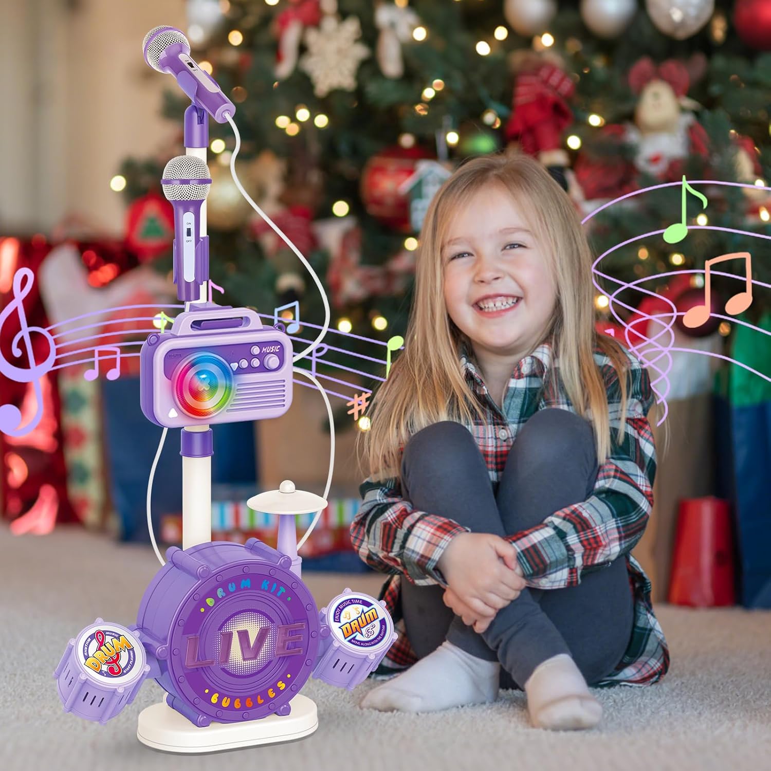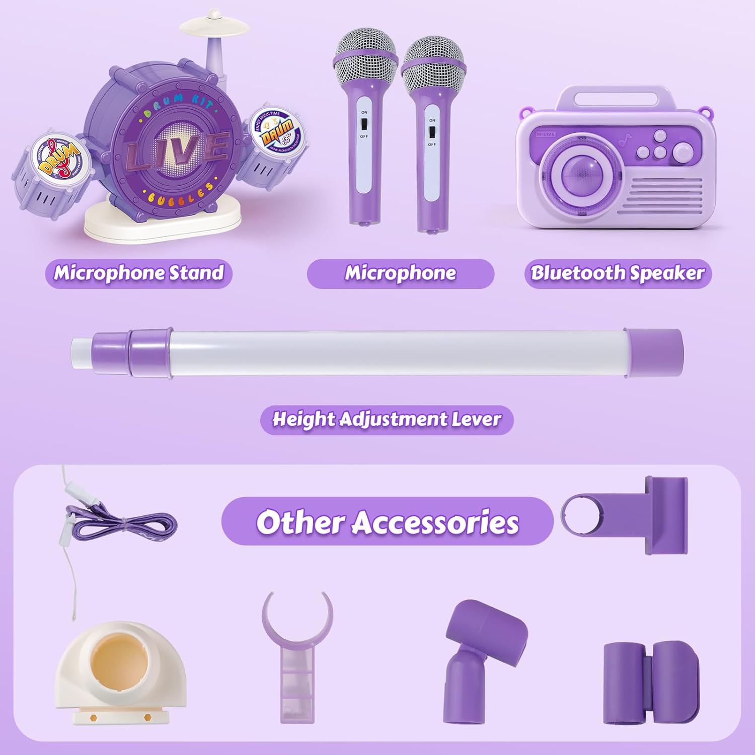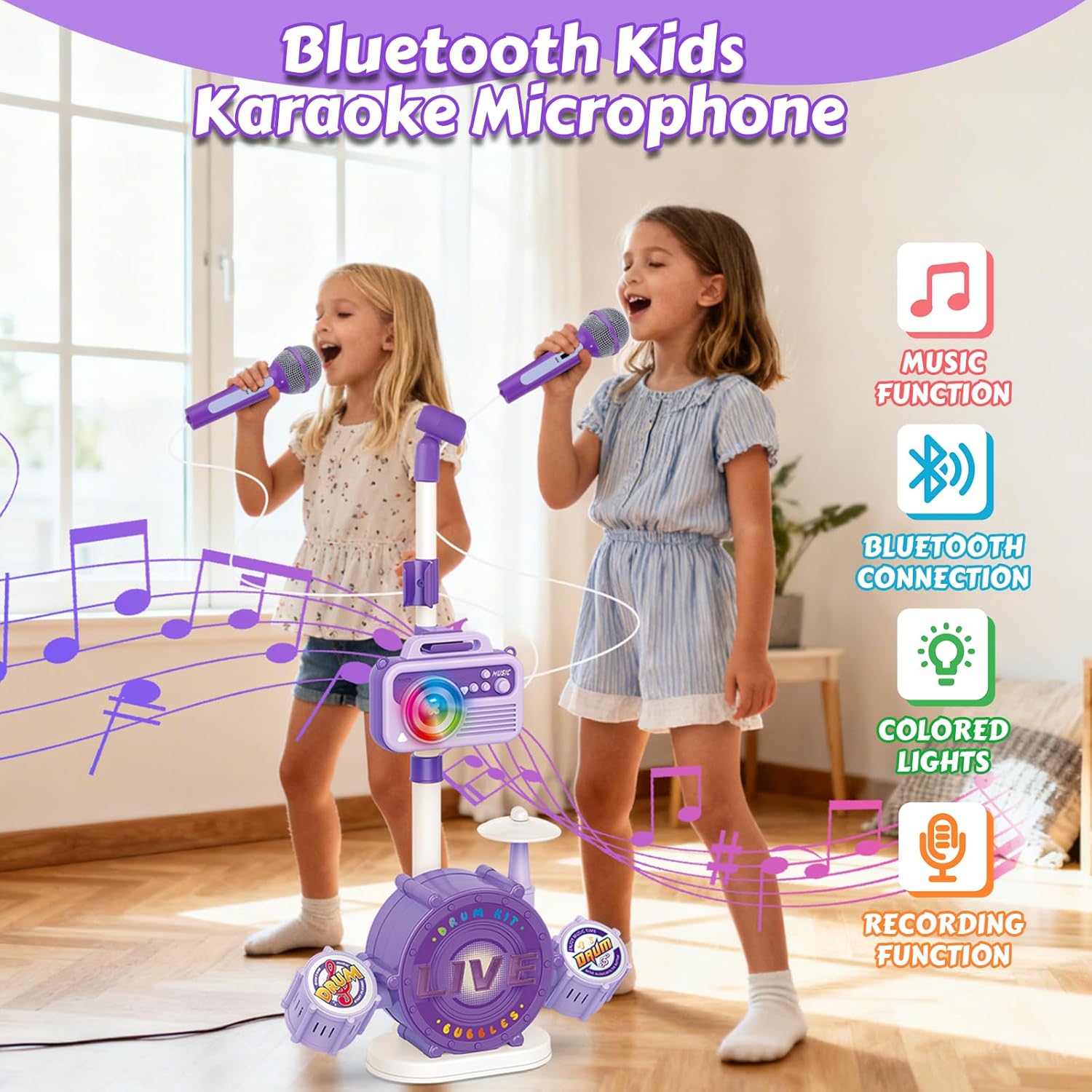 Karaoke MaBring out your child’s inner performer with the Bluetooth Kids Karaoke Microphone with Adjustable Stand—a delightful mix of fun, creativity, and music! This 5-in-1 karaoke machine includes everything little singers need: Bluetooth connectivity, colorful LED lights, bubbles, a voice changer, and recording mode. Whether performing solo or enjoying a family sing-along, playtime becomes a stage-like experience full of laughter and joy. The adjustable stand grows with your child, ensuring lasting enjoyment for years. With easy Bluetooth pairing and built-in songs, kids can sing along to favorite tunes, practice rhythm, and develop stage confidence. Perfect for birthdays, holidays, or everyday play, this karaoke microphone promotes imagination, self-expression, and screen-free entertainment. Transform any play session into a joyful musical experiencechine for Kids