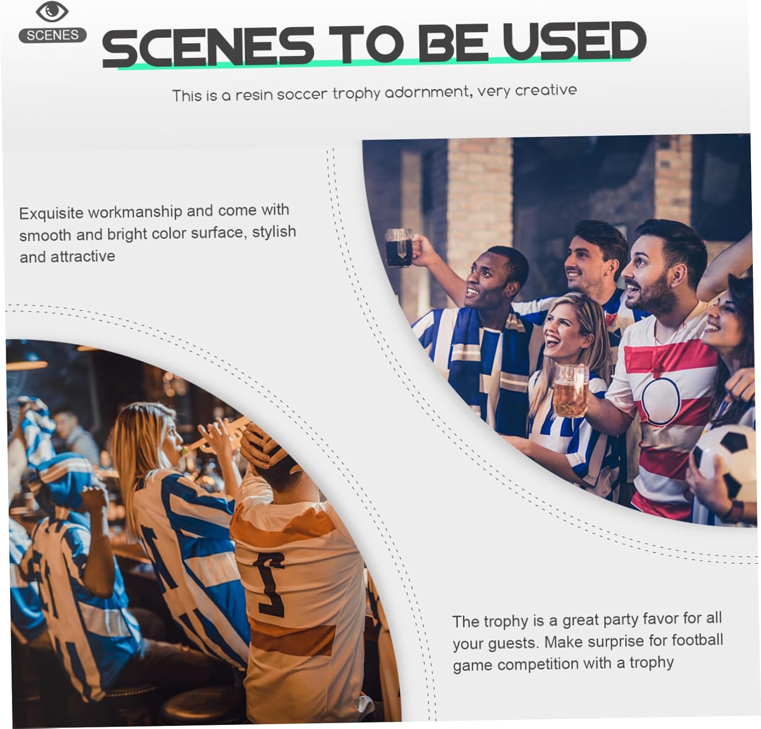 Package List 1 x Trophy Characteristics -Color: Golden Exquisite Soccer Trophy -Size: 14.00X14.00X6.00cm/5.50X5.50X2.36in Exquisite Football Trophy -Material: Resin Resin Trophy Decor -Manufactured with safe and - resin material, wear-resistant and for long term storage use Competition Supply. -The trophy is a great party favor for all your guests. Make for football game competition with a trophy Football Trophy. -Proper size makes it convenient to put in small box and bags Competition Accessory. -Challenge everyone to have a great time at your party and give them the recognition and recognition Versatile Soccer Trophy. -Exquisite workmanship and come with smooth and bright color surface, stylish and attractive Home Decoration.Goods InformationResin Football Trophy This is a resin soccer trophy adornment, very creative.Exquisite Soccer Trophy It's for schools, events, parties, birthdays and offices for competitions, awards, party , corporate events, sports and race-themed party supplies, props, prizes, games, participation and more