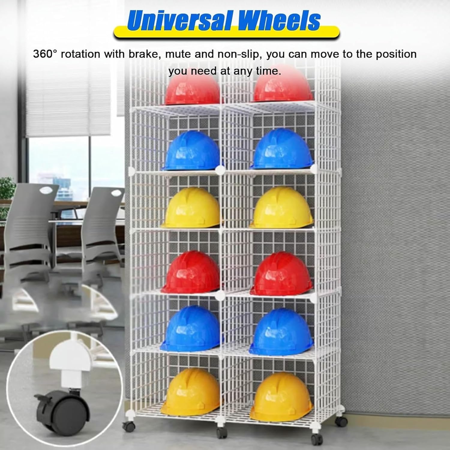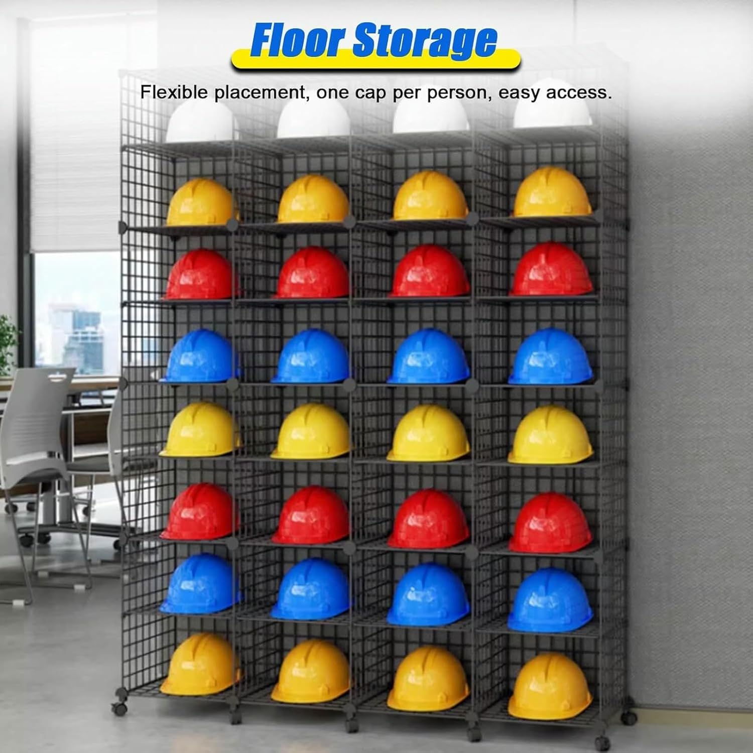 Description: ----Do you have this kind of trouble?----Safe helmets are too many and nowhere to put them?----Occupy space is not suitable for offices, factories, workshops, construction sites?Hurry up and bring our safety helmet holder home, it will keep your indoor space tidy.Features:Suitable for: helmet shop, bedroom, retail stores, office, workshop, garage, factory etc. Floor standing design, avoiding damage to the wall by punching holes for installation.Multi-functional shelf, also can put clothes, sundries, books, bags and so on.Multi-layer storage, increase exposure, effective and rational use of space.Hollow grill design, good ventilation performance, keep dry and tidy.Water/rustproof, easy to clean.Easy to assemble and disassemble.Specifications:Material: Metal IronColor: BlackSingle Grid Size: L×W×H=35×35×25cm/13.8×13.8×9.8inCapacity: One grid, one helmet (Note: Can only store helmets that are smaller than the storage grid size)Yes/No Assembled: YesStyle: Modern SimpleHow To Assemble?Each panel of helmet storage rack is connected with snap fasteners, just align the iron mesh with the slots and insert it into the slots, no tools are needed for the installation, it can be installed in a few minutes.Package Contents: 1 x Hard Hat Rack ( No Hard Hat included. )