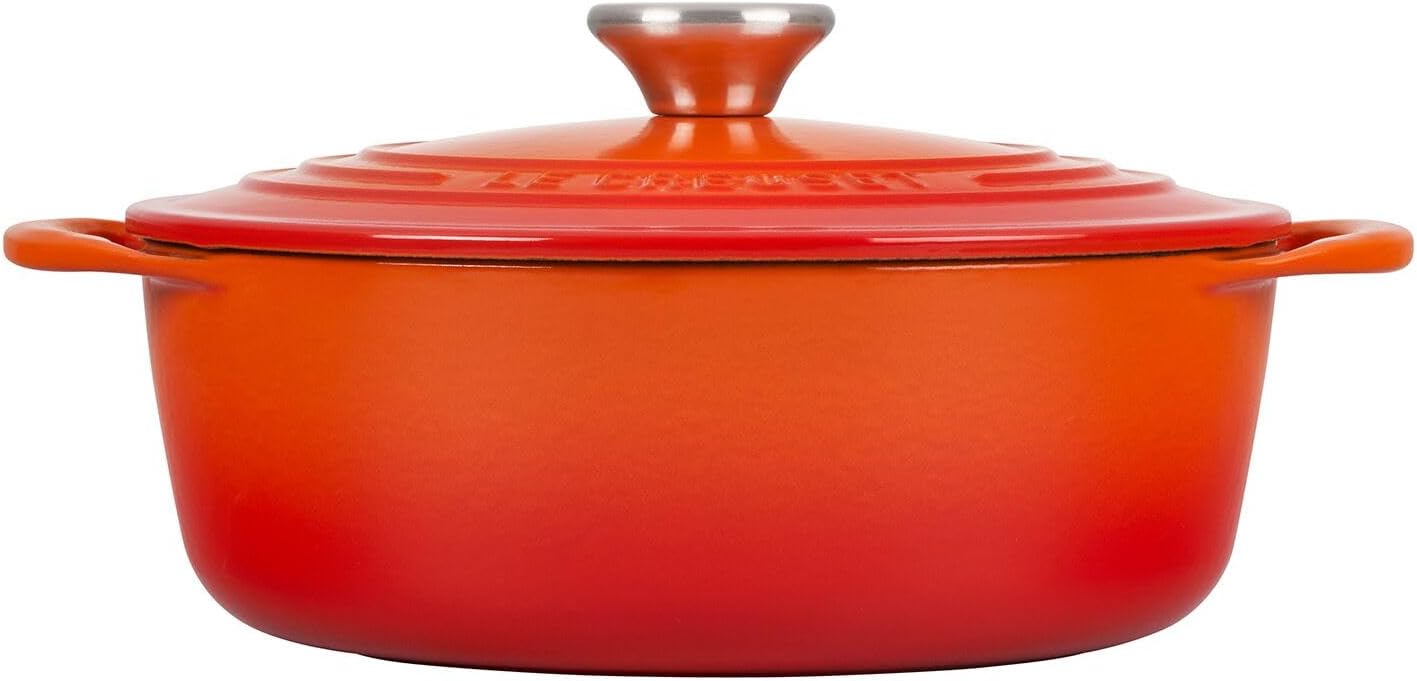 Le Creuset’s Shallow Round Oven is crafted from our legendary enameled cast iron for superior results every time – a versatile shape for everyday use that is perfectly sized for casseroles, side dishes, reheating leftovers and more. The wider base is ideal for searing and browning without crowding, and the shallow depth makes it effortless to stir sauces and serve steaming stews and bubbling casseroles directly from the pot from stove to oven to table. Durable and easy to clean, the Shallow Round Oven has a streamlined handle design that makes it effortless to handle, as well as easy to store in compact kitchens.