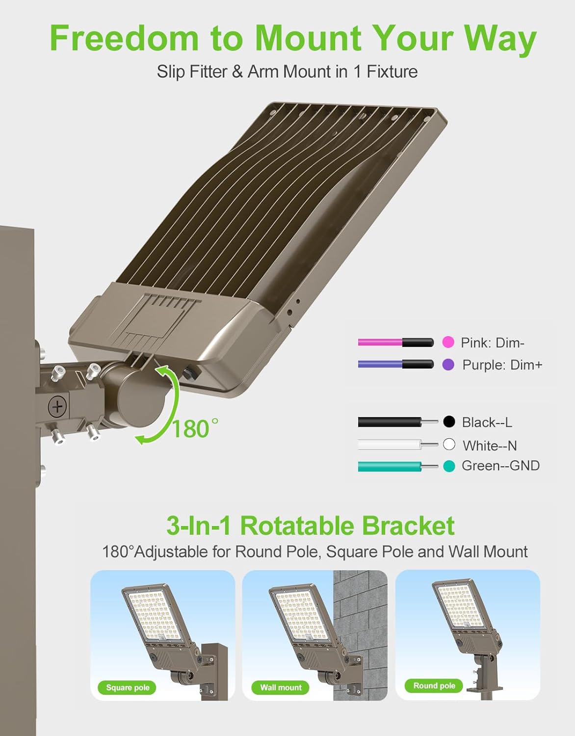 | Included Components | Arm And Slip Fitter in 1 Mount, LED Parking Lot Light |