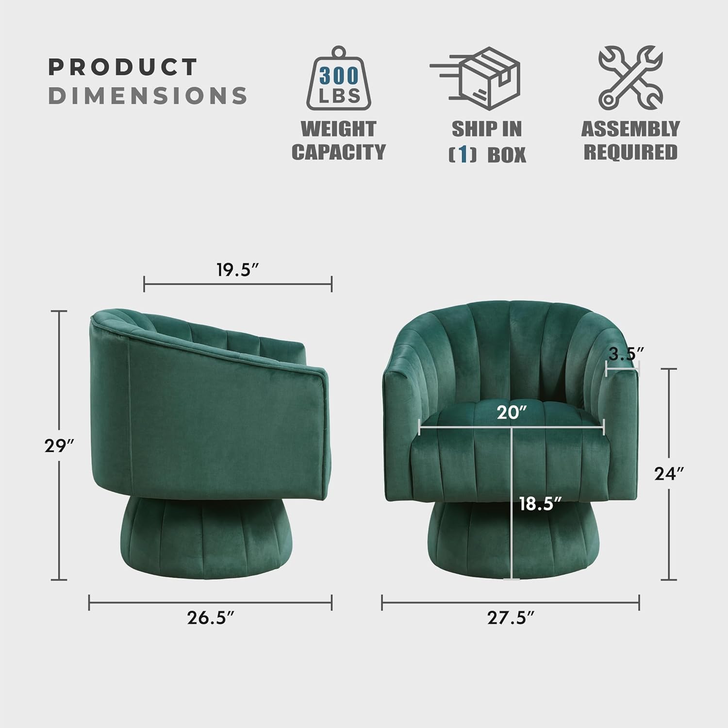 | Item Type Name | Velvet Fabric Upholstered Swivel Lounge Chair with Rounded Base and Channel Stitching for Living Room/Bedroom/Office, Easy Assembly |