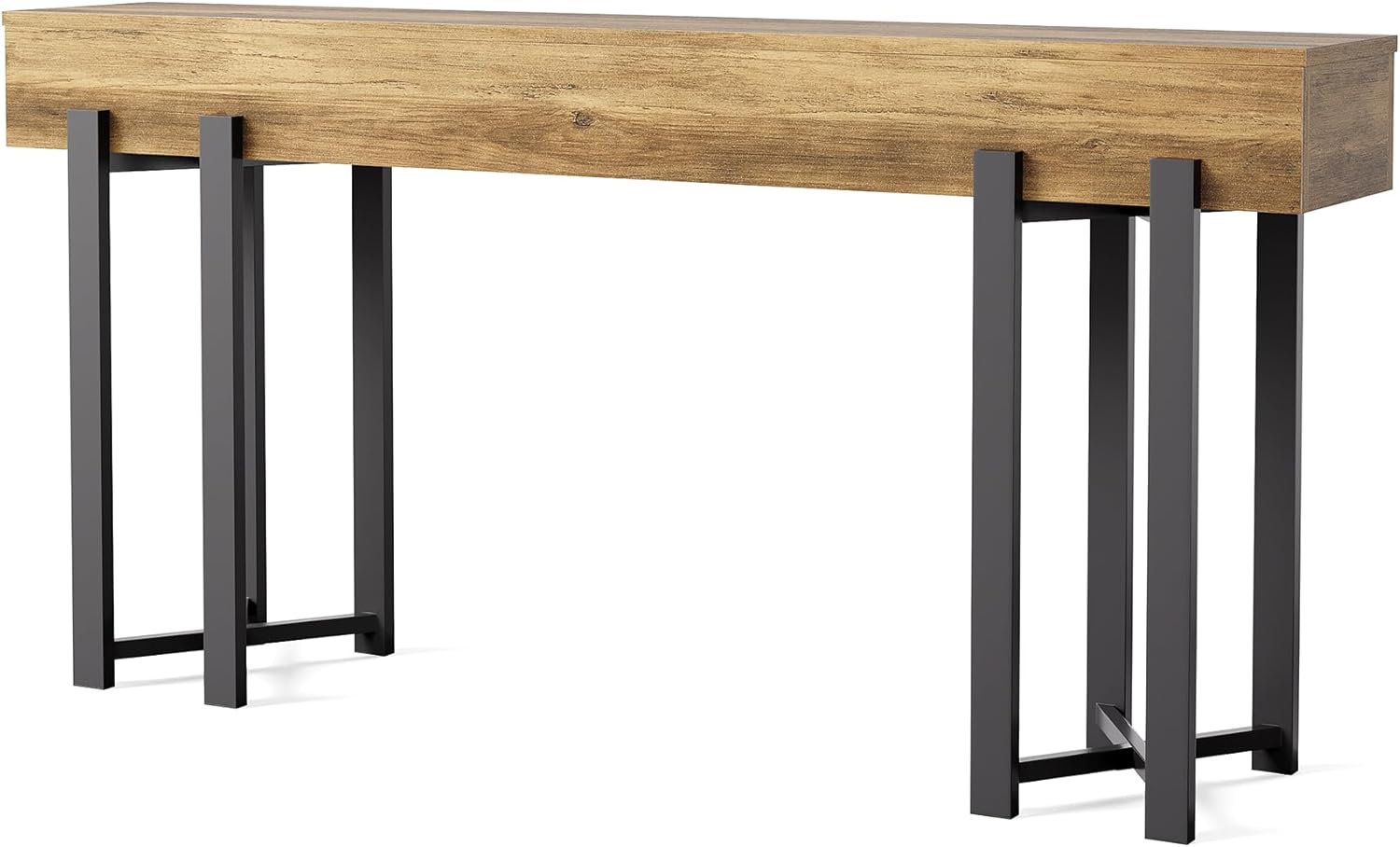 | Item Type Name | Industrial Behind Couch Table, Minimalist Sofa Table for Living Room, Rustic Brown Wooden Hallway Foyer Table with Black Metal Frame |