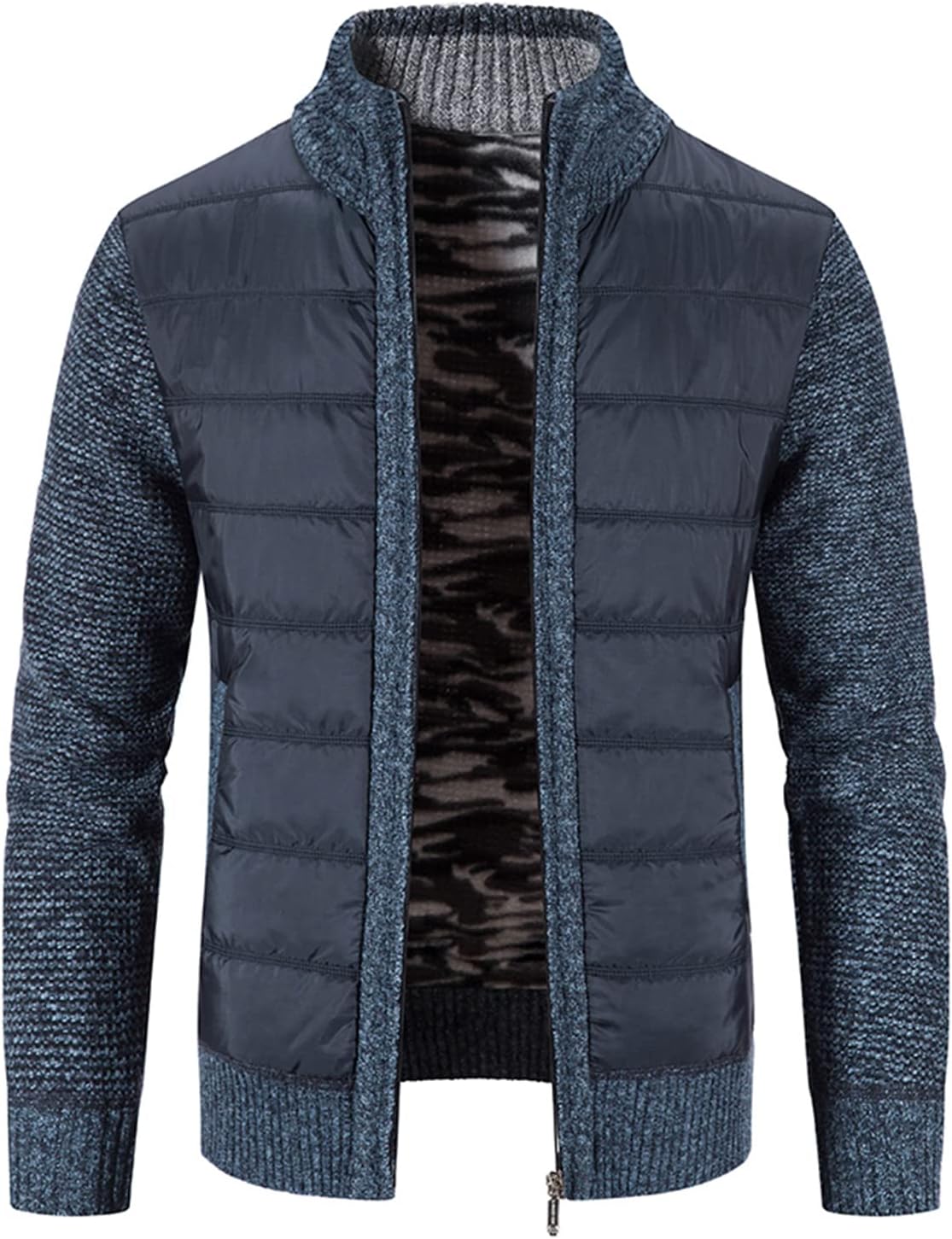 Lu's Chic Men's Long Sleeve Cardigan Sweater Zip Up Insulated Puff Jackets Warm Slim Fit Fleece Lined Jacket Business CasualSize GuideTag Size M=US Size 36, Tag Size L=US Size 38, Tag Size XL=US Size 40, Tag Size 2XL=US Size 42, Tag Size 3XL=US Size 44
