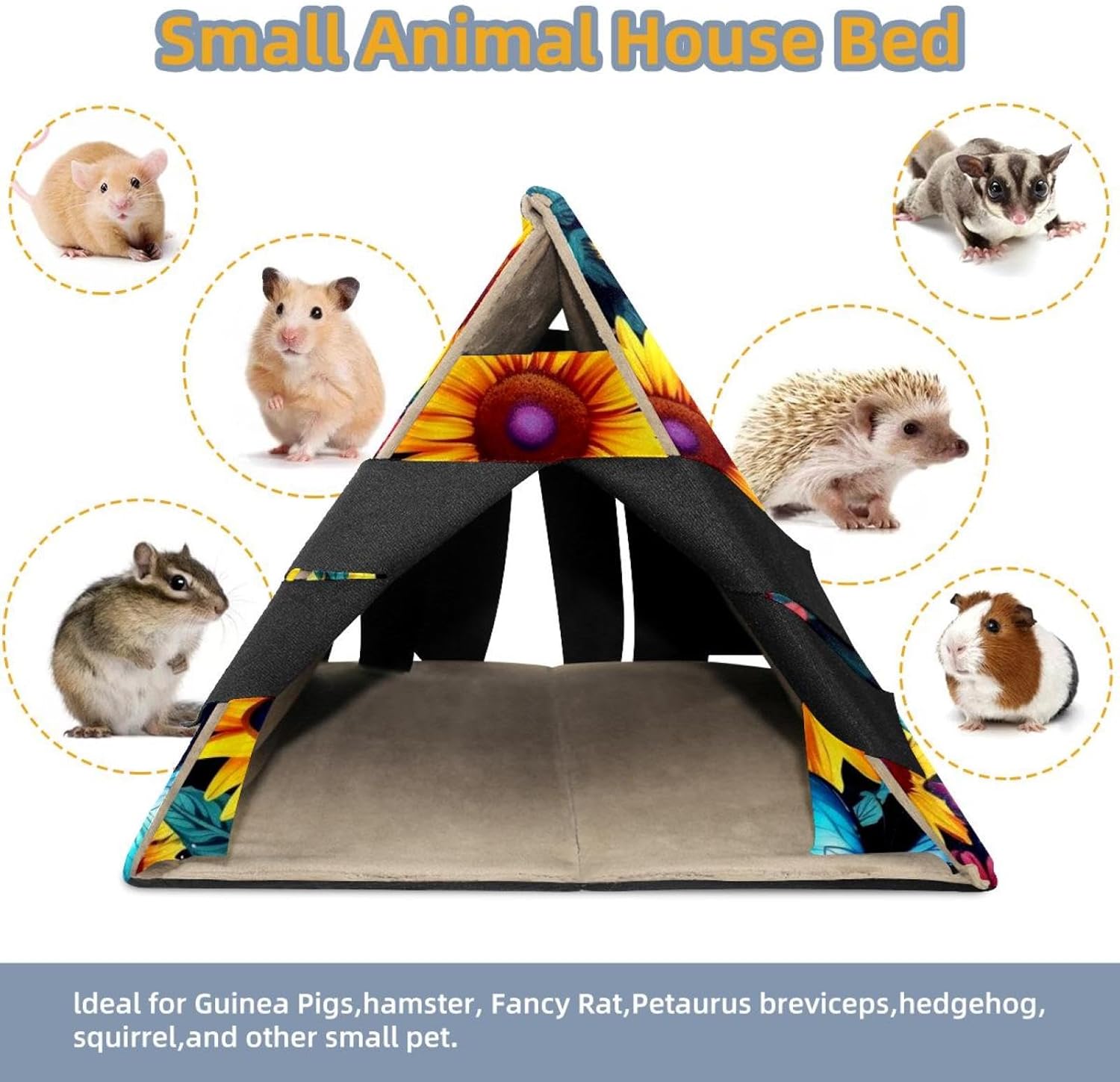 This "Little Hamster Home" is a series suitable for small pets such as hamsters, guinea pigs, rabbits, ferrets, mice, hedgehogs, and chinchillas. It is made of high-quality short velvet fabric and provides a private, warm, and comfortable hiding place, allowing your cute little animals to feel safe. Your baby can play, rest, hide, sleep, or engage in other activities in this safe haven, while also being a warm home. The size of 'Little Hamster House' is 10.2 inches long, 12 inches wide, and 8.5 inches high. The bottom is a foldable PP board, so when not in use, the hamster nest can be folded up without taking up space. By covering it with a layer of blankets, this cabin can become a comfortable hiding place. This small animal bed is made of high-quality soft short velvet fabric, with a sturdy structure that remains stable on the ground and will not collapse on its own. The ultra soft fabric makes your baby feel comfortable and warm in their own cabin. Plush curtains provide a private, warm, and comfortable resting place for your pets, allowing them to feel secure. Specially designed for guinea pigs, hedgehogs, golden bears, sugar kangaroos, hamsters, squirrels, chinchillas, small rabbits, flying dragons, and other small animals. When accidents cannot be avoided, there is no need to worry! This guinea pig bed can be hand washed and machine washed, suitable for air drying.