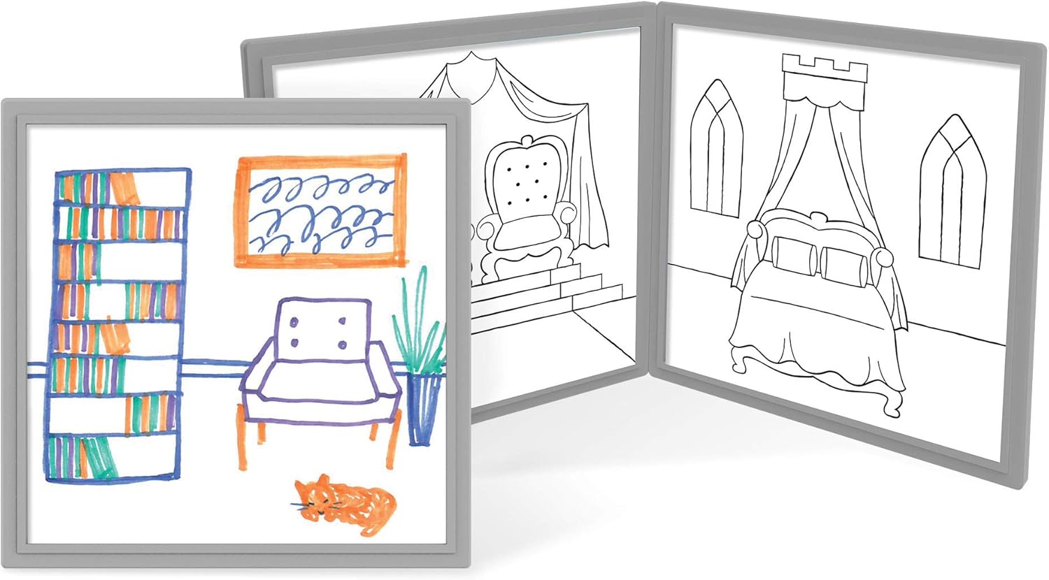 | Included Components | 8 magnetic panels, eraser cloth, four dry-erase markers, two wooden play figures in stands |