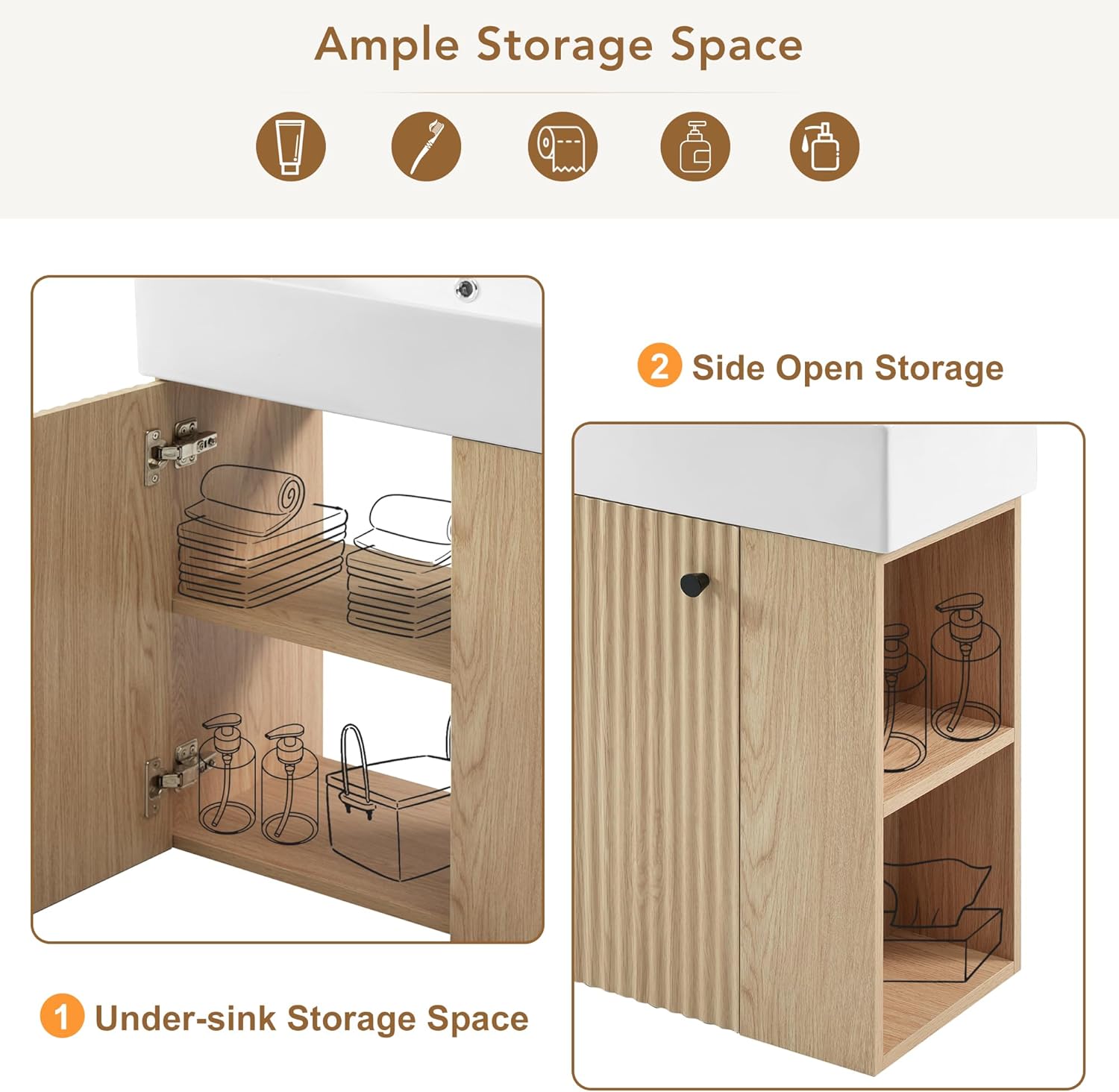 | Storage Options | Door, Shelf, Under-cabinet |
