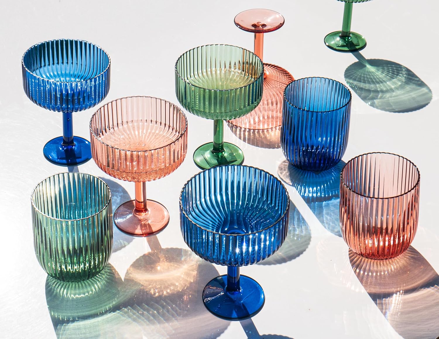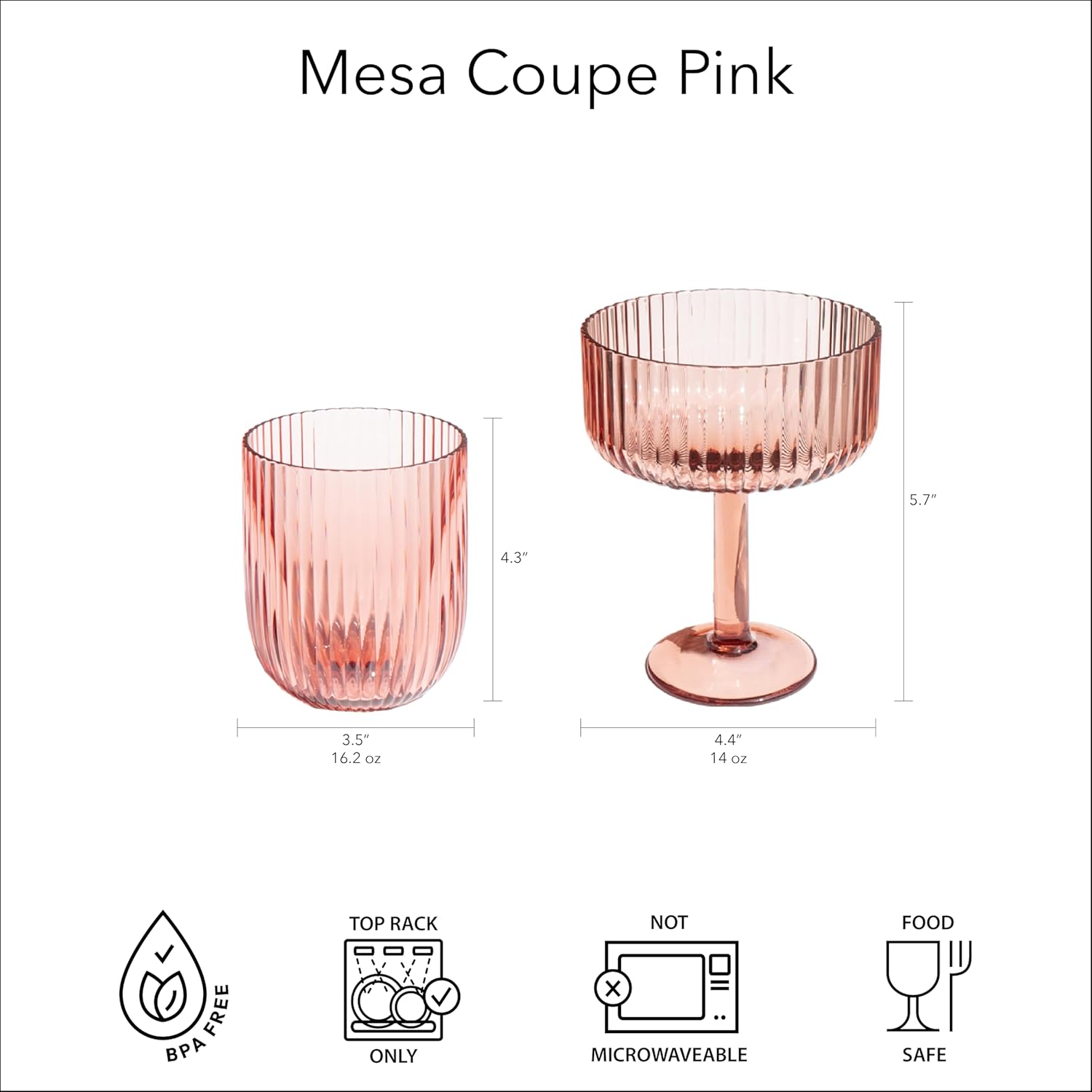 Elevate your dining experience with the sleek Mesa coupe glass set. Crafted from crystal-clear acrylic, this set offers stunning, glass-like clarity with added durability. Perfect for both your kitchen and outdoor dining, these coupe glasses are crafted for strength and long-lasting performance while being top-rack dishwasher safe for easy cleanup. Style your table with a contemporary flair and enjoy the versatility of this beautifully designed set.