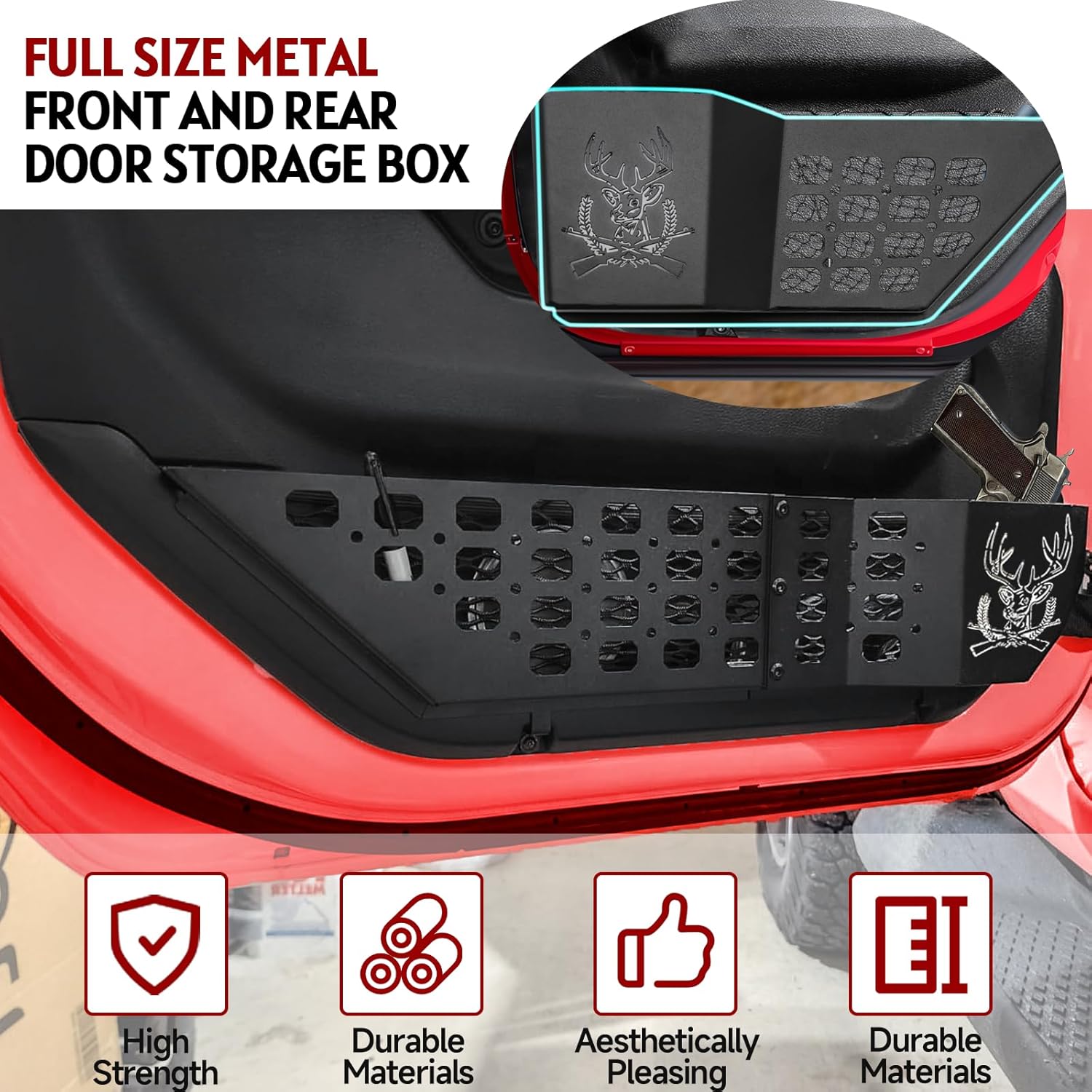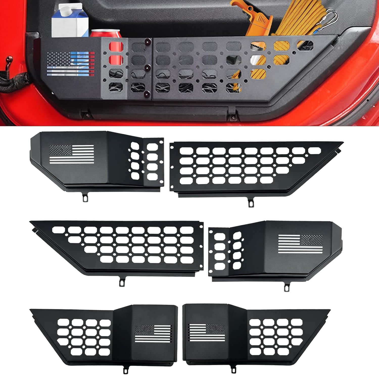 | Included Components | metal front door pockets x 2, metal rear door pockets*2, screws and nuts*6, wrenches*2 |