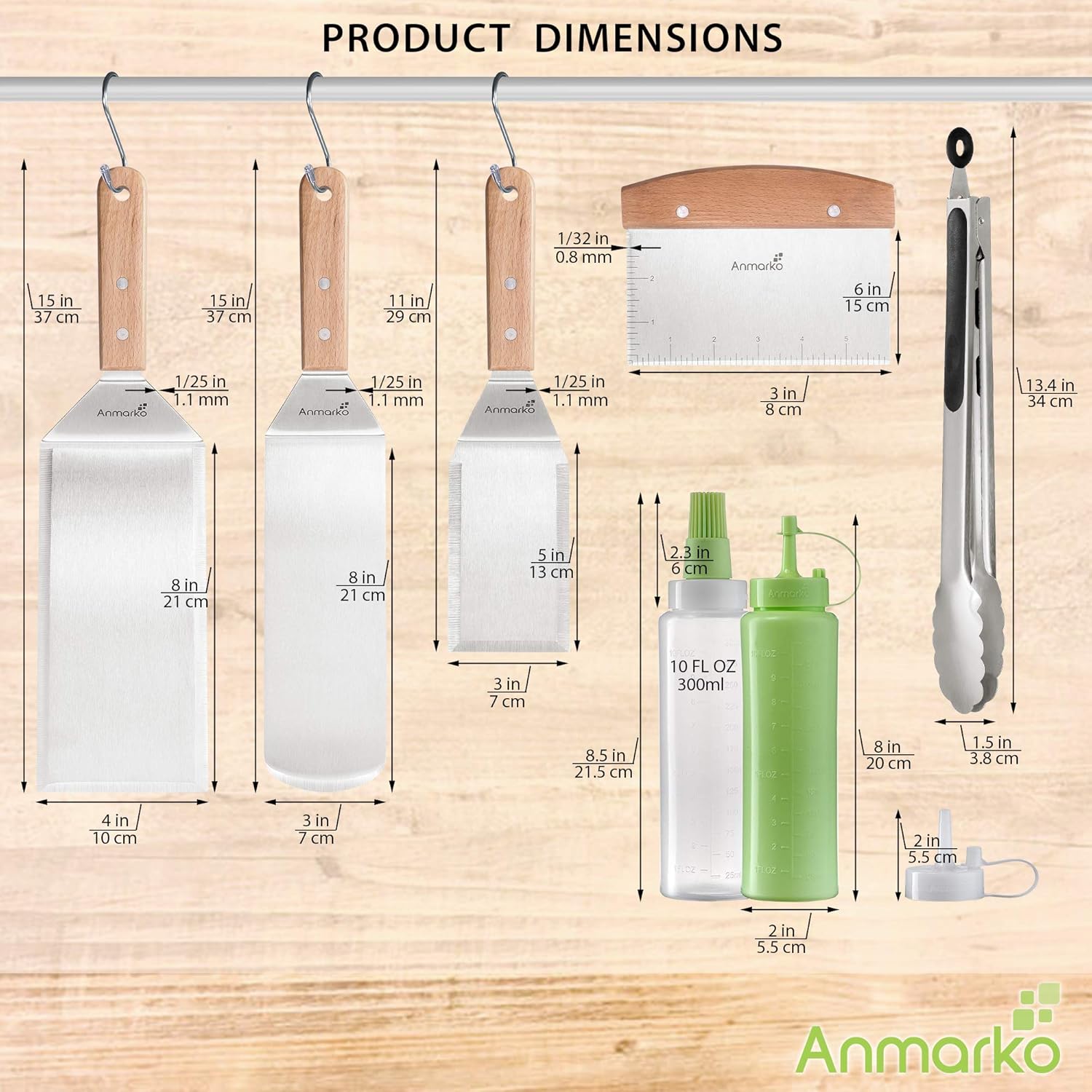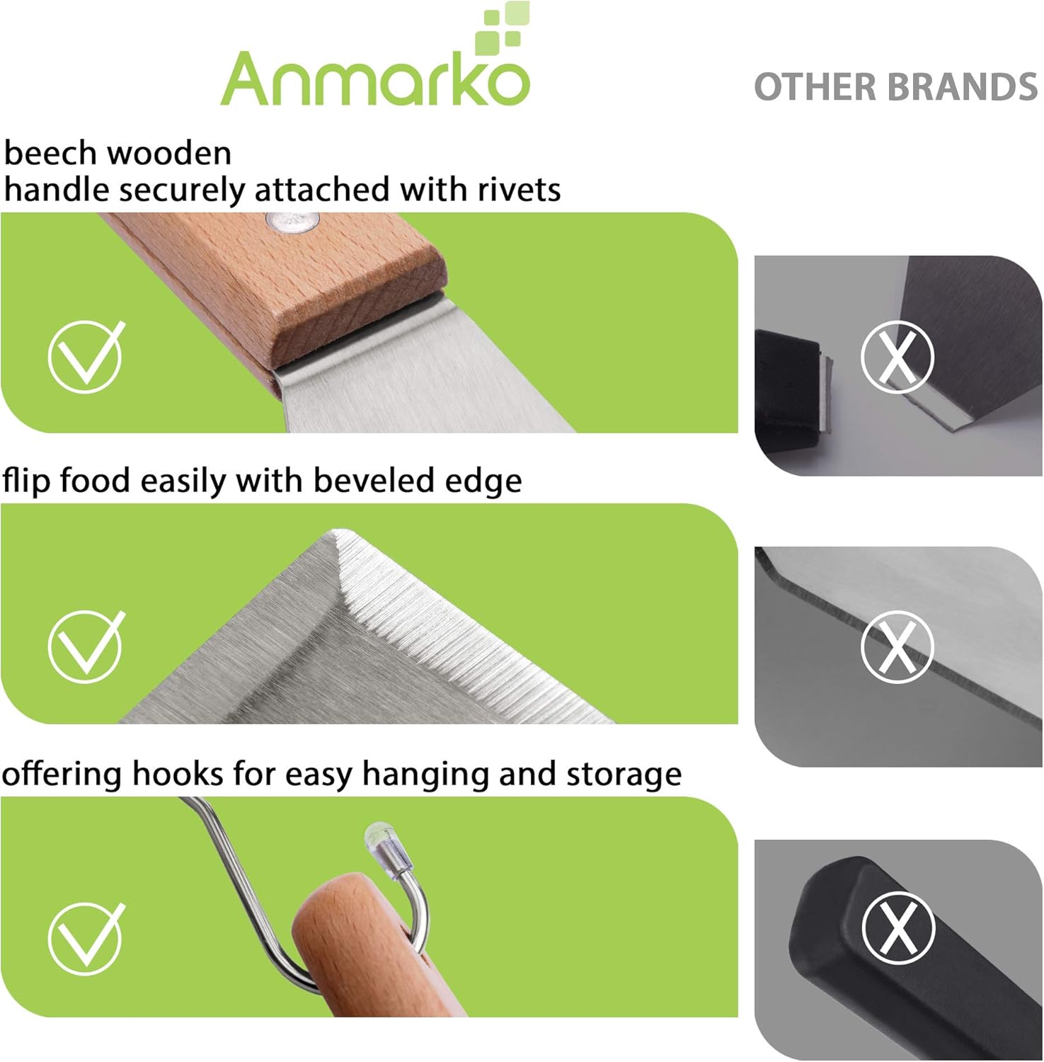The Anmarko believes in providing quality and offers Professional spatula Set - ✓ Comes with 4 face types, Pancake Flipper , Hamburger Tuner [Oversized] and Griddle Scraper to cover any situation. - ✓ Commercial Grade Quality perfect for the professional kitchen but practical enough for your home or outdoor grill as best grill accessories or bbq tool set. Oversized professional grade restaurant style stainless steel spatulas. Large spatula Pancake flipper - great for flipping burgers, pancakes, veggies, eggs, omelette and all other grill or griddle applications. Stainless steel chopper/scraper - works pretty well as small spatula turner and is great for dicing food while grilling and scrape griddles perfectly clean. This Anmarko griddle/grill tool kit is the perfect addition to any backyard kitchen and will compliment your Blackstone griddle as well as your Weber, Charbroil, Coleman or any other barbeque or grill you or that special someone enjoy.Pancake Flipper Features: - Rounded corners for easy flipping - Long surface area for larger pancakes and eggs - Ergonomic and comfortable handle for easy hanging - Griddle Turner/Scraper Features: - Sturdy beveled edges perfect for scraping griddles - Tapered edge for easy chopping directly on the griddle - Durable stainless steel construction - Ergonomic and comfortable handle for easy hanging Multifunction use makes it perfect as : - Teppanyaki Grill Spatula Set - Griddle Grill Spatula Kit - Hibachi Grill Spatula Set - Camping Spatula Set - Outdoor Grill Spatula Set - Pizza Spatula Set - Fish Spatula - Chef Spatula The utensils and scrapers are all dishwasher safe.
