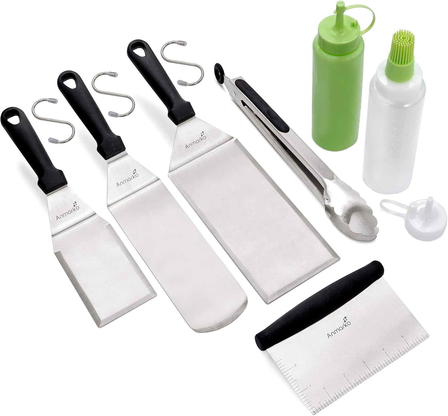 | Included Components | baking spatula turner, grill spatula, hamburger turn, grill scraper, grill tongs, compression bottles with silicone brush lid |